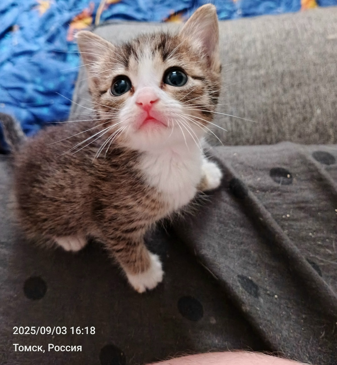 Найден котенок , на вид около месяца , очень игривый очень ласковый , ходит в латок , себе не можем оставить есть животные . Малыш ищит новый дом !