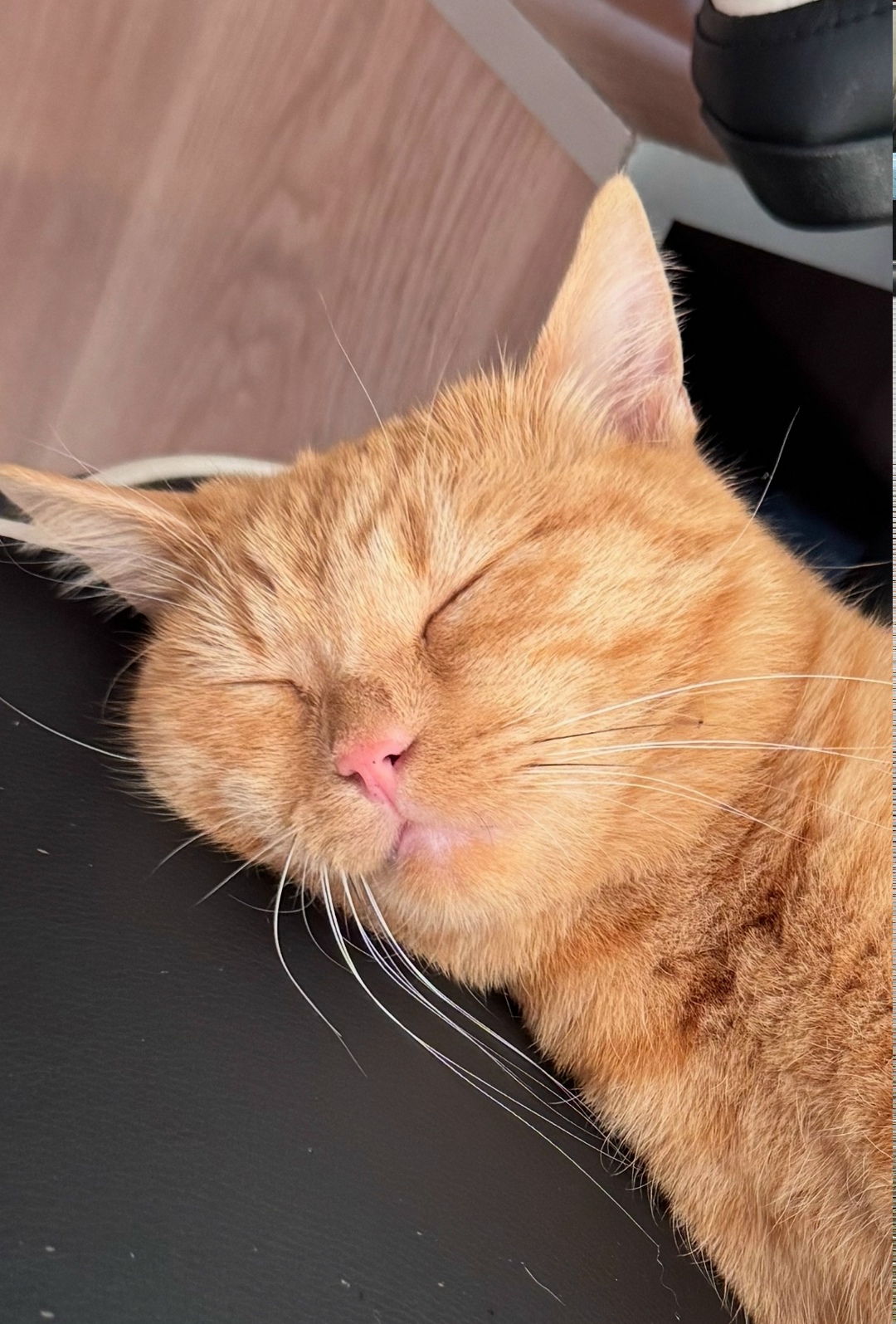 Кот кастрированный. 2,5 года. На мордочке имеются несколько чёрных усиков, остальные белые. Глаза рыжие.