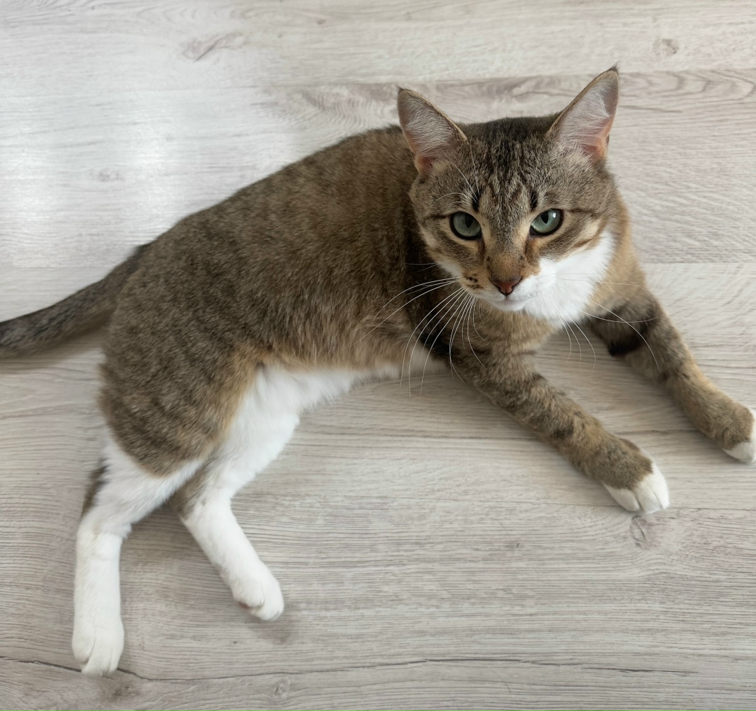 Нашли ласкового и очень милого кота — он явно был домашним, тянется к людям, любит внимание и спокойно ведёт себя рядом с человеком. Сейчас мы о нём заботимся, но, к сожалению, не можем оставить у себя: у нас уже есть кошка, и она совсем не принимает нового питомца.