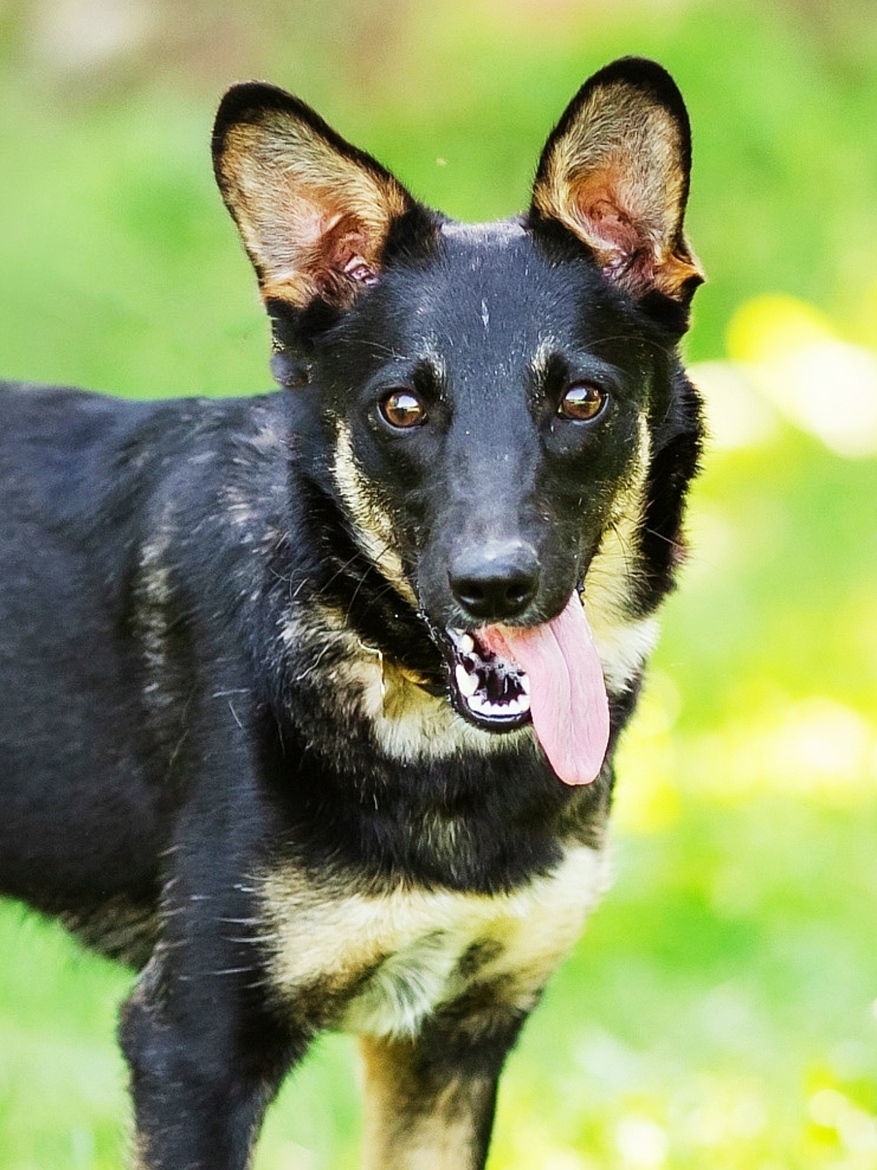 Не лает без повода, с собаками дружит, к кошкам испытывает интерес, общается с ними аккуратно.