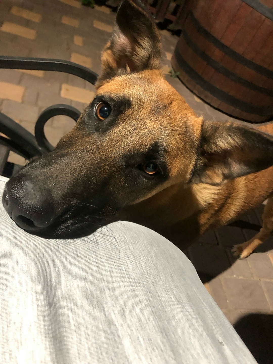 В районе СТ Икар или аэродрома Юхарина балка 18.12.2025 убежал крупный щенок смеси малинуа и бобтейл, возраст 10 мес. Не кастрирован. В коричневом кожаном ошейнике, не подписан.