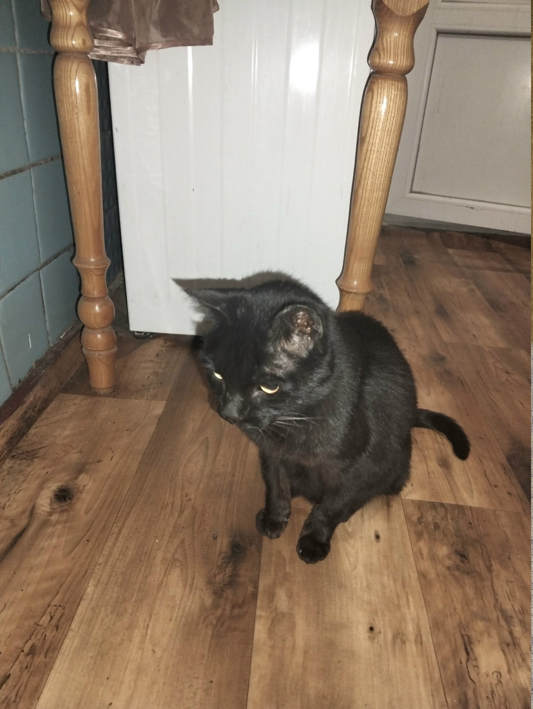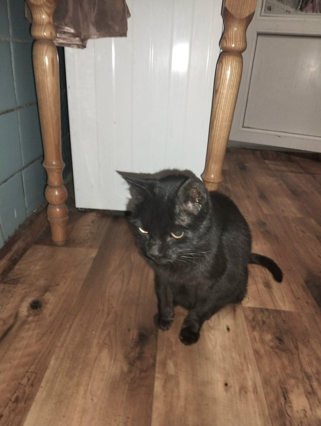 На улице Кожанова 12 а был найден кот, чёрный, вроди мальчик, вроди кастрированный. Ручной, просился в двери какого то магазина, там было закрыто. Видно что домашний, подобрал потому что рядом дорога и он начал лезть под машины.