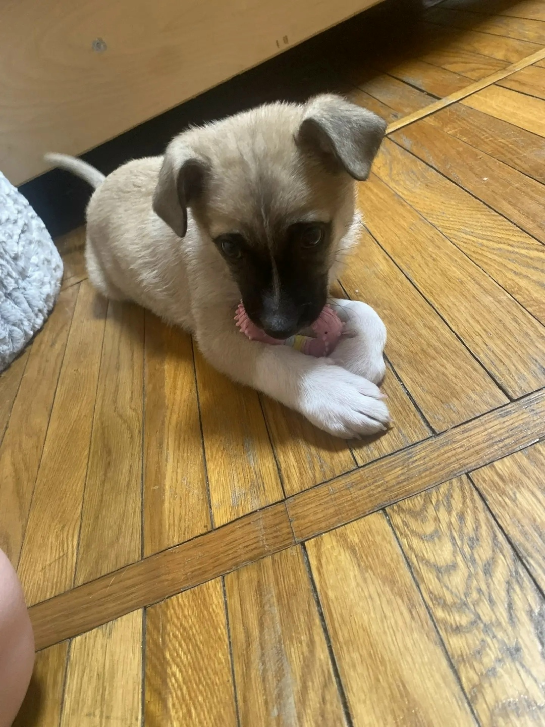 Возраст в районе 4 месяцев, мы ничего не знаем о его происхождении, но мы точно знаем, что собакен обещает вырасти крупным парнем💪
