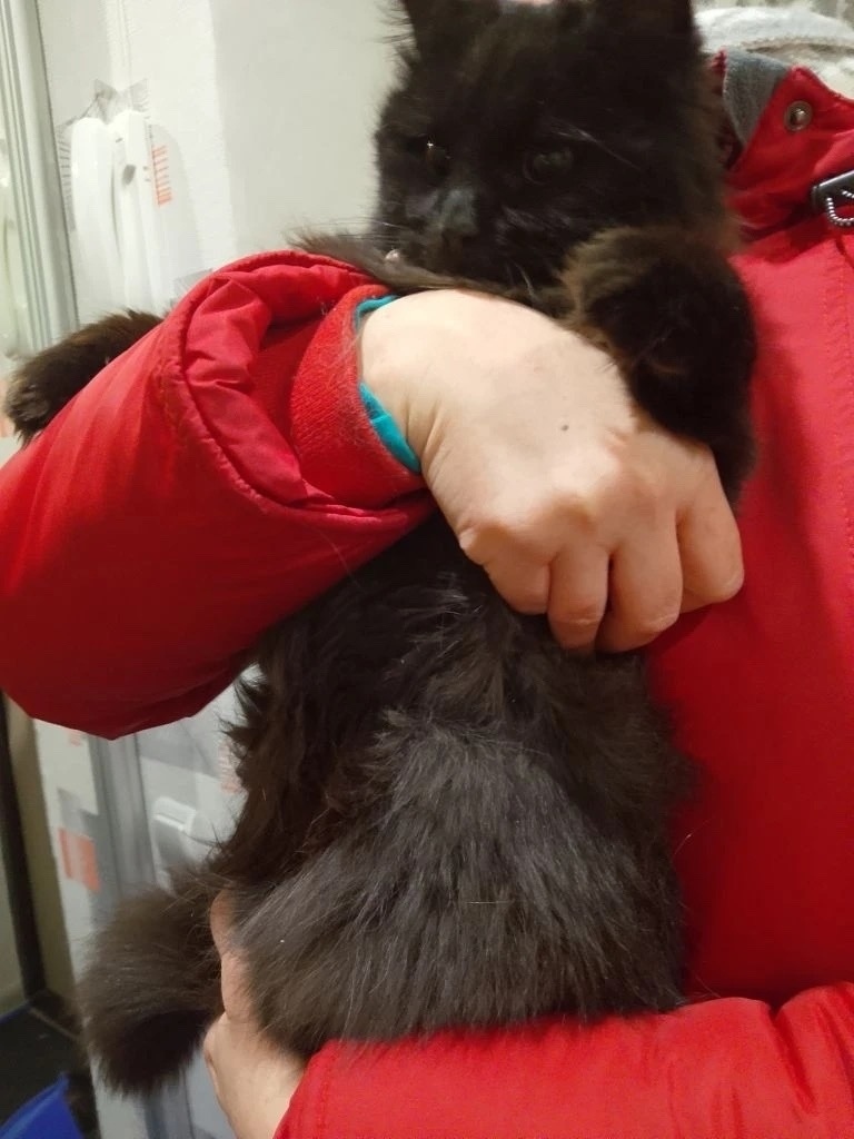 Очень ищем старых или новых хозяев !Пушистая кошечка черного цвета с серебром по воротнику найдена 18 февраля на парковке ЖК Вершина в Михайловке. Была истощена, сейчас отъелась, искупана, обработана от блох. Лоточек на отлично, кушает сухой и влажный корм, понемногу натуралку. Очень любит внимание, разговорчивая. Сейчас живёт на балконе так как с котами живущими в квартире на контакт идёт не очень хорошо.89614706424