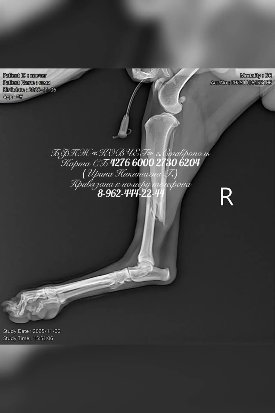 В клинике VetHouse Сэма стабилизировали и провели сложнейшую операцию на лапе.