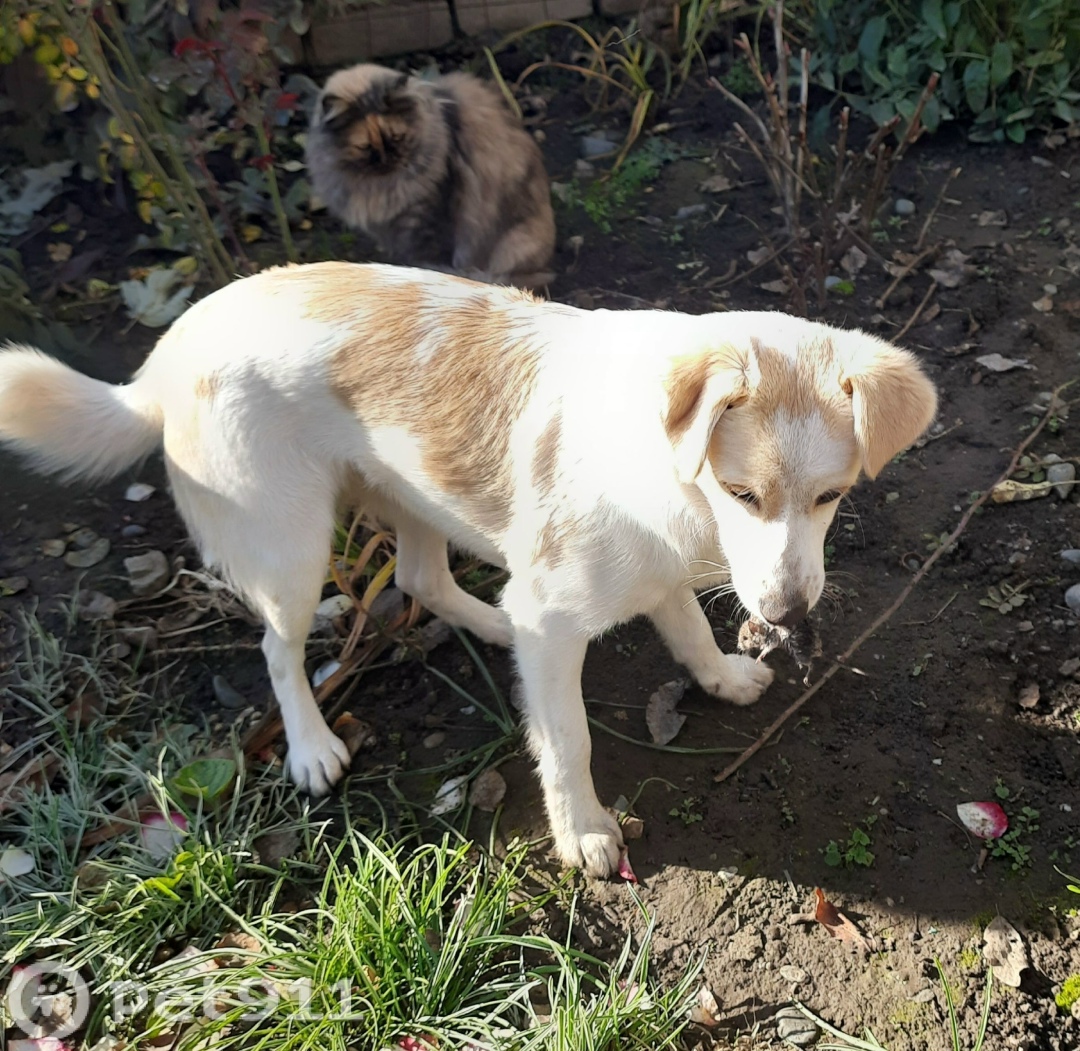 Белая с рыжим пятнами на спине и ушах