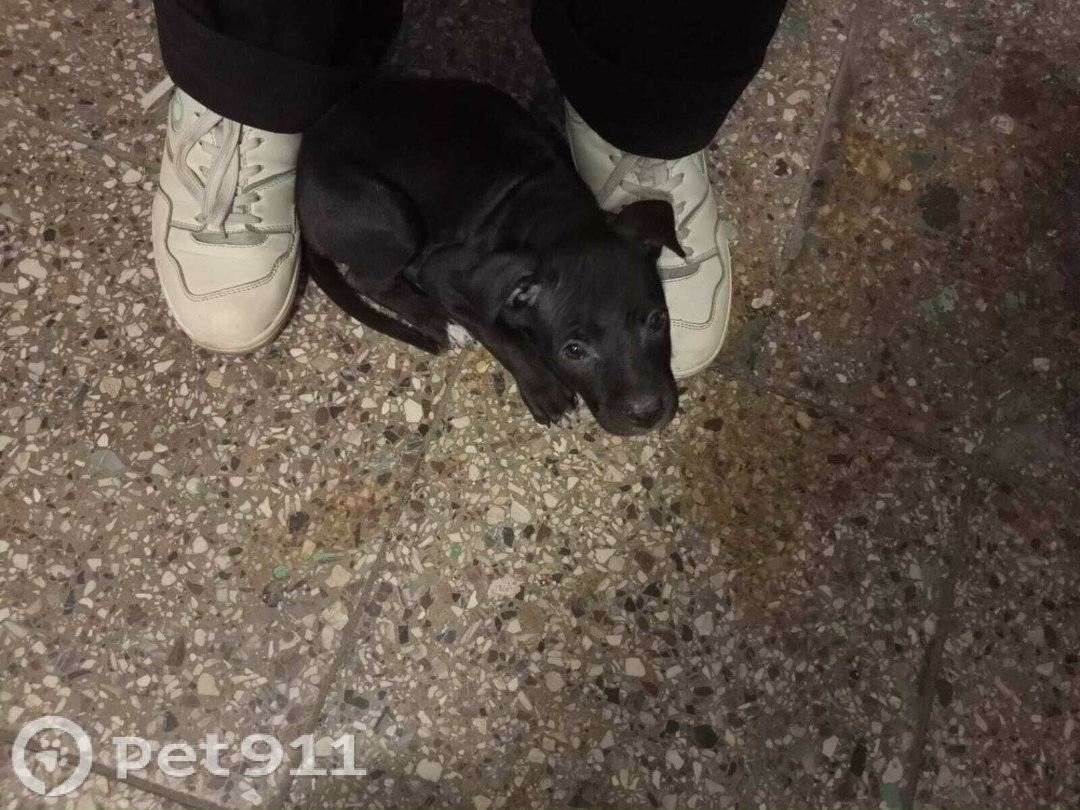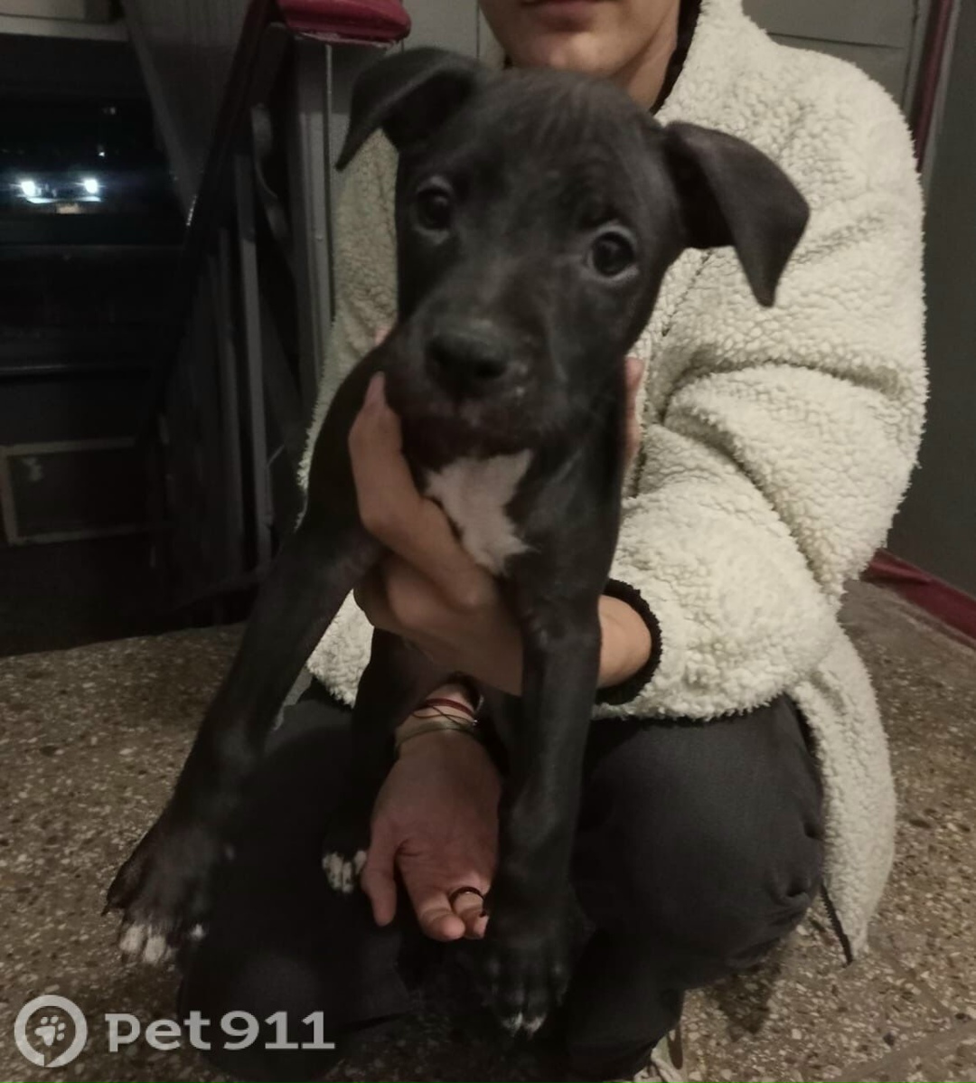 Черный окрас, грудь и кончики лап белые. Очень ласковая девочка месяцев 2-3. Нашли в районе пл.200-летия.