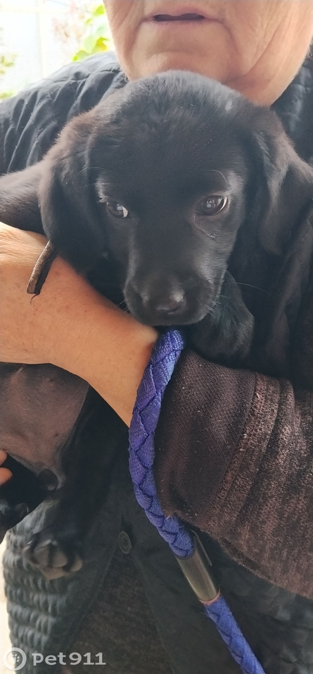 Щенок, чисто черный, девочка, внешне выглядит здоровой, на вид месяца 2-3,на шее коричневый ошейник с металлическими кнопками.Бегала по улице несколько дней, так говорят очевидцы, а мы спасли из-под колёс машины.