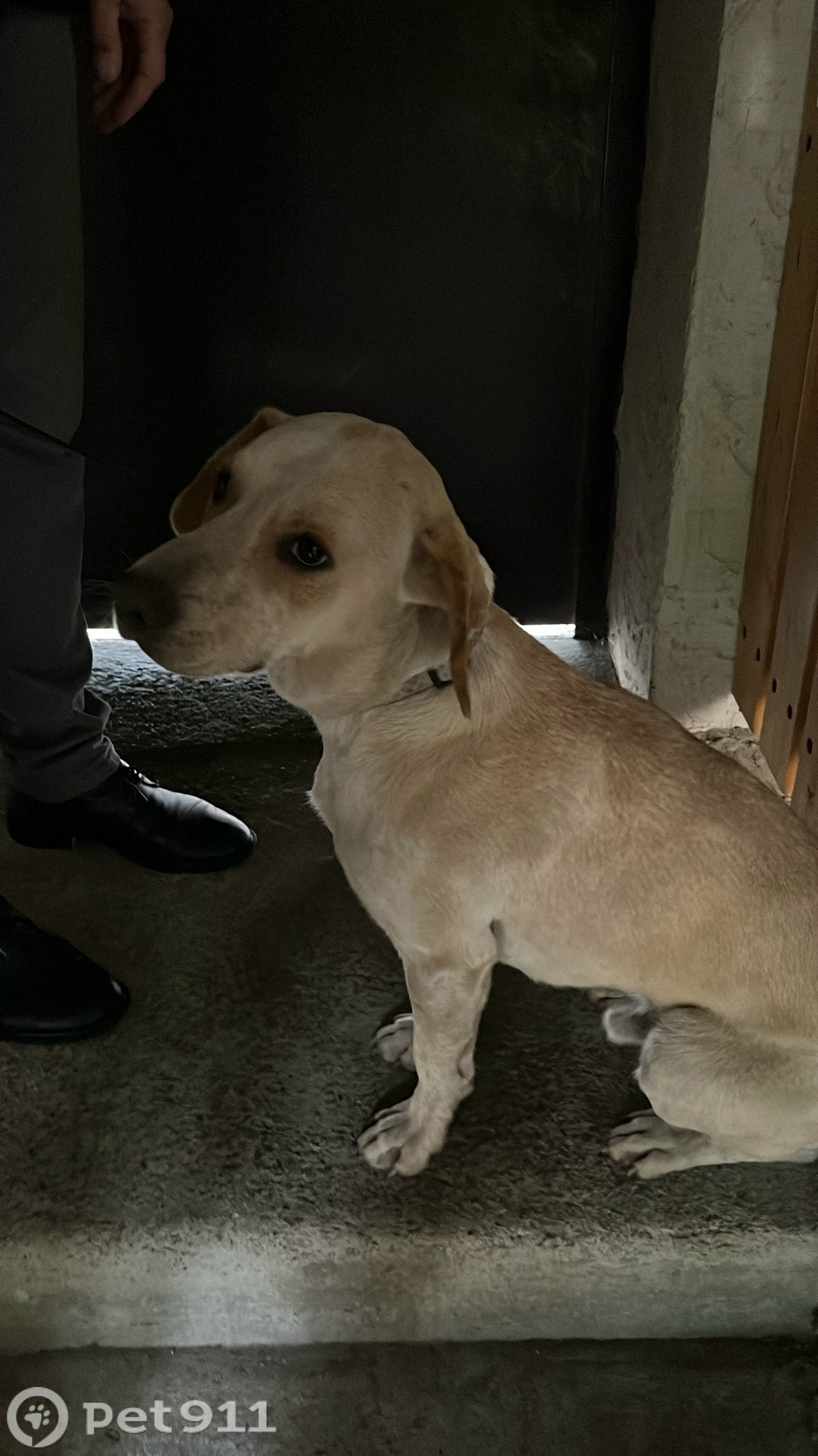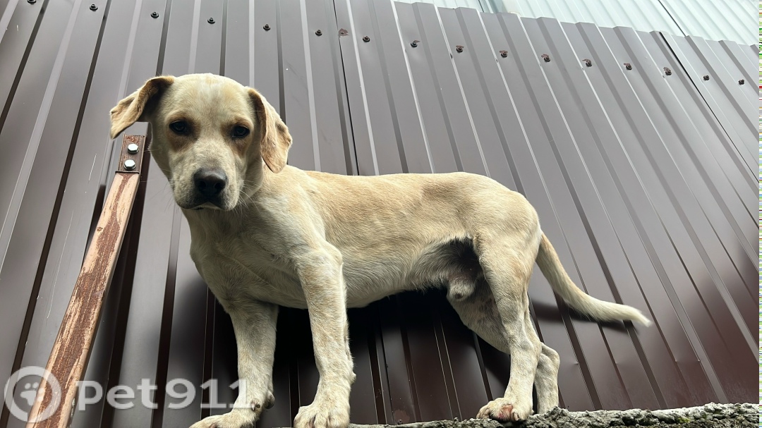 Похож на лабоадора-ретривера. Мальчик, кастрированный (недавно кастрированный). Очень ласковый, любит людей. Видимо, пытался прибиться к стае, покусан, полечили. Команды знает, в туалет умеет ходить, все понимает