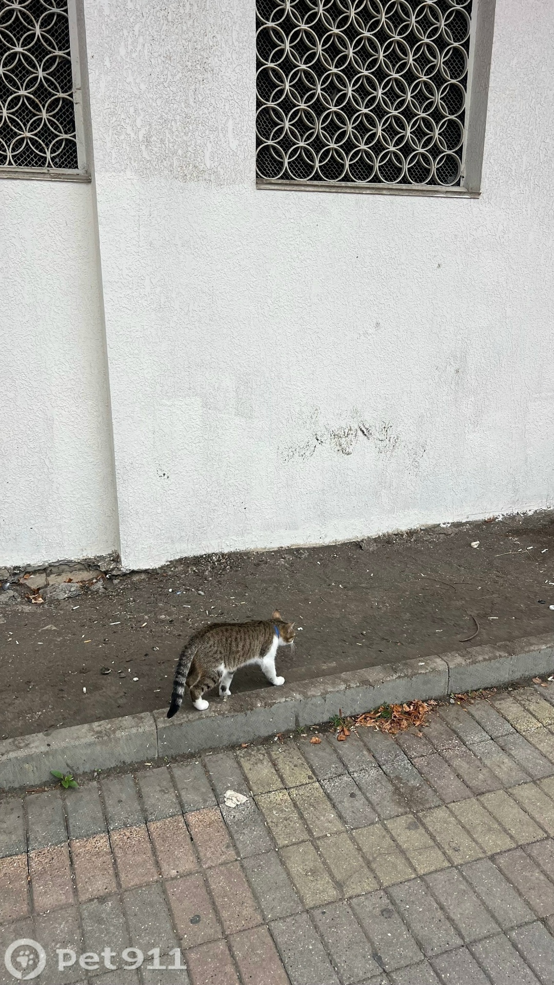 Милейшая кошечка с синим ошейником ходит по улице Кисловодская, возможно чья то.