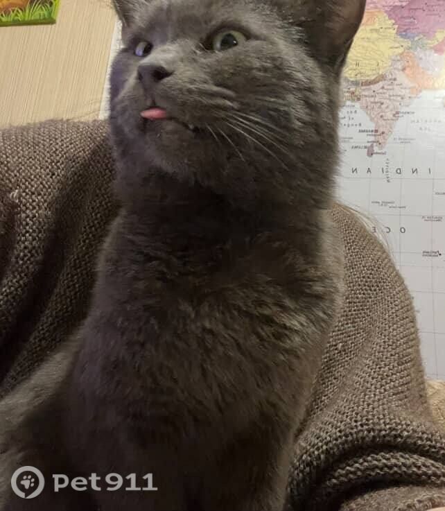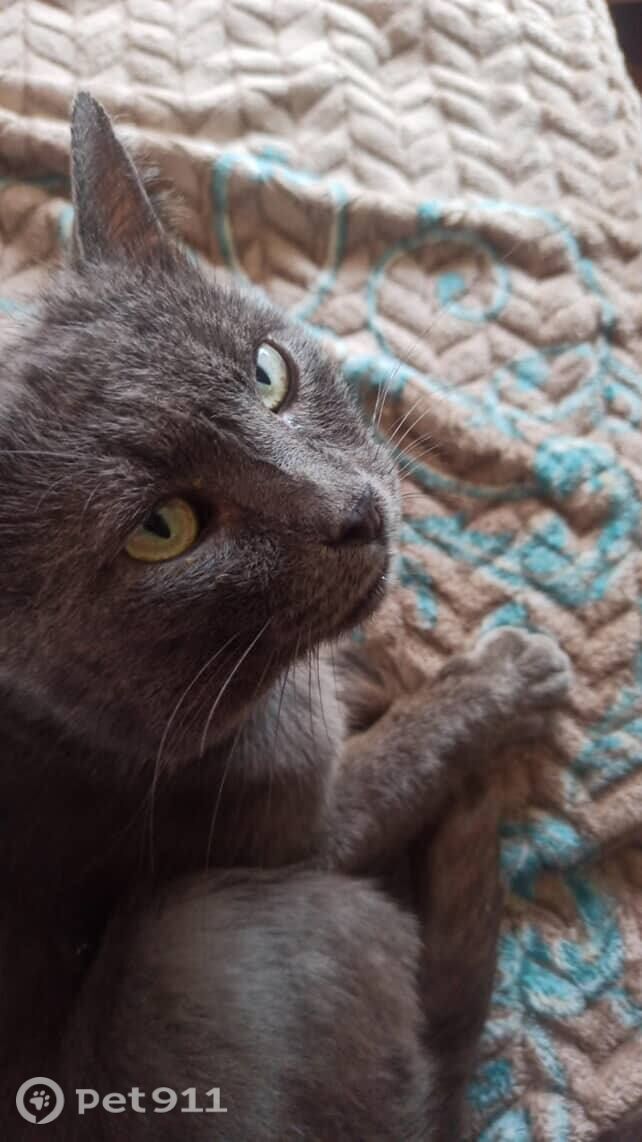 темно-серый окрас; мальчик; сбежал с желтым ошейником, но возможно уже мог снять; взрослый 3 года; зелено-болотные глаза; не толстый и не тощий