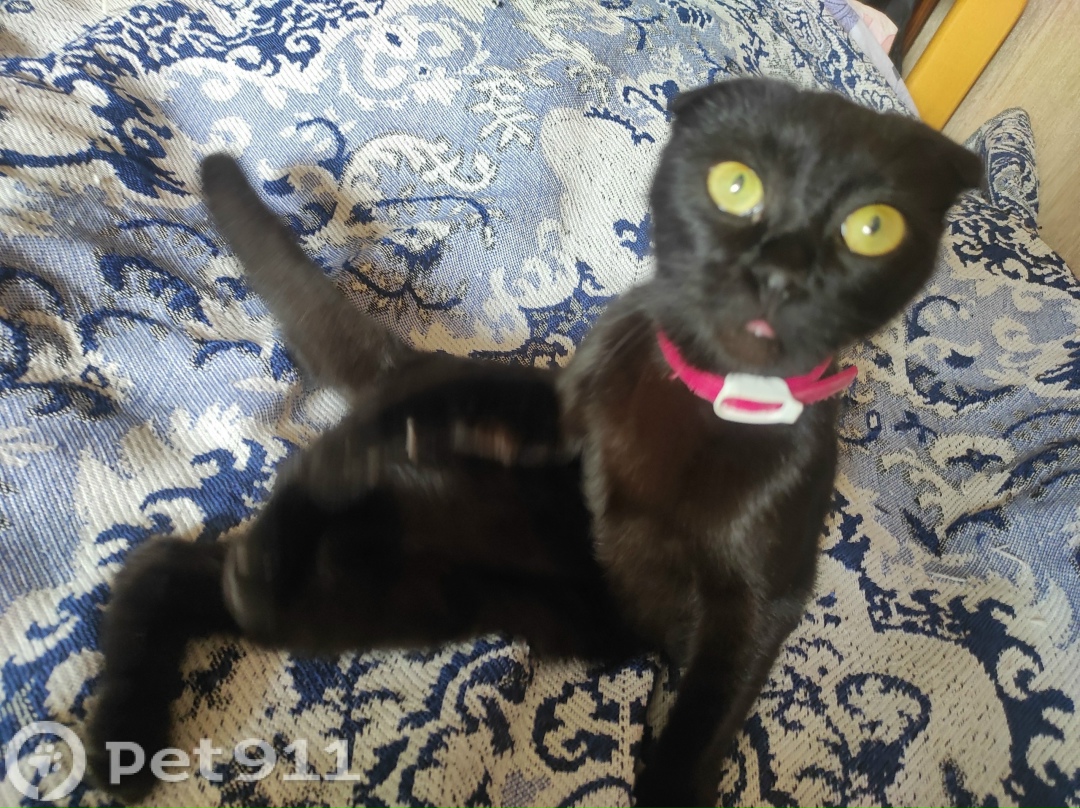 Найдена черная шотландская вислоухая кошка на ул Розы Люксембург 3 . Кошка очень ласковая, дружелюбная, контактная . Видно, что был хозяин, т к был ошейник розовый и она приучена к лотку.