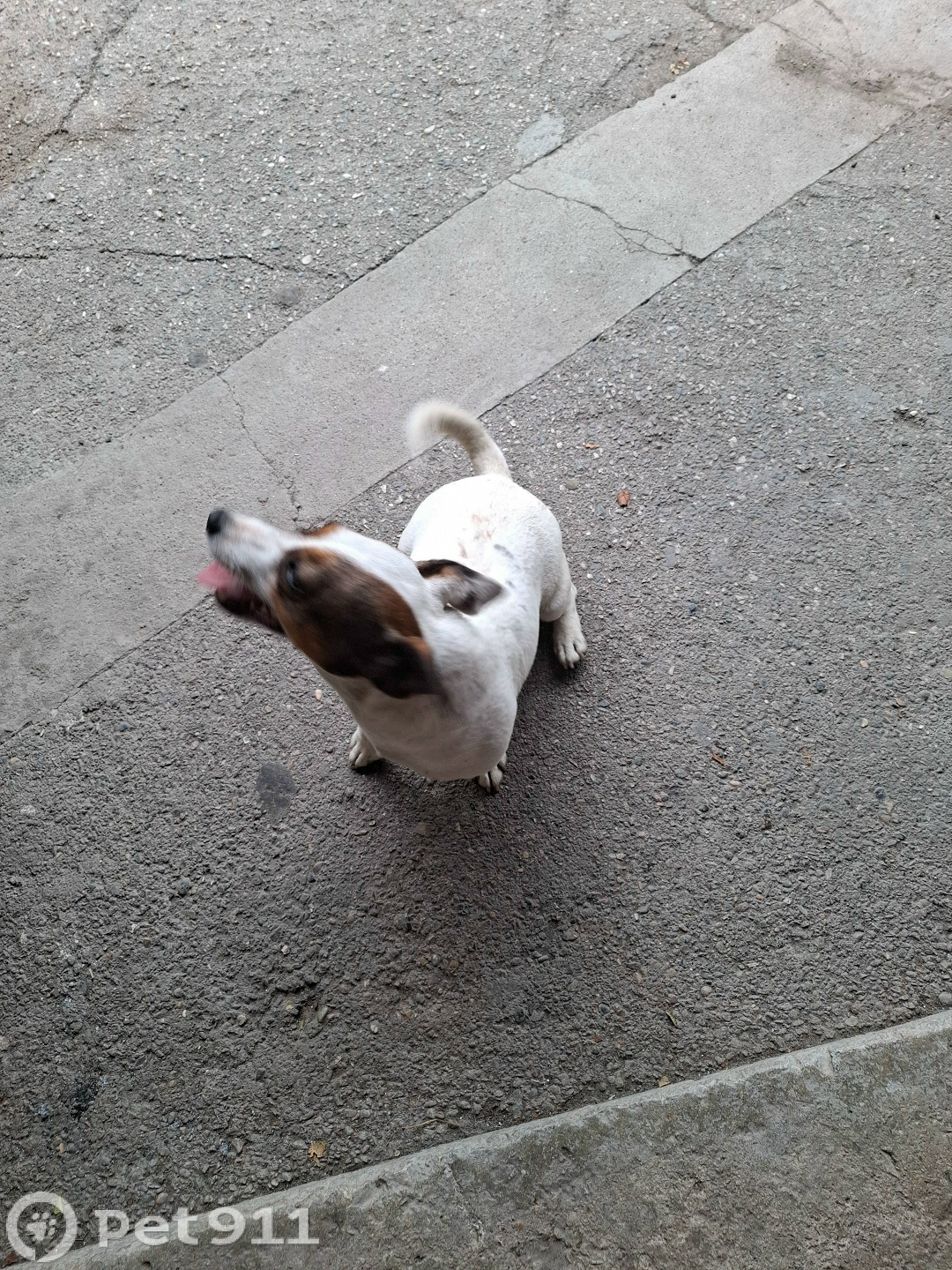 Окрас белый с коричневым,ласковый,добрый собакен,похож на породу Джек Рассел ,был спасён от больших собак !