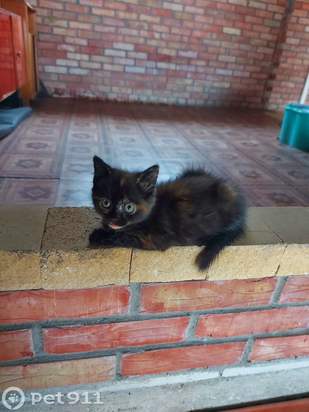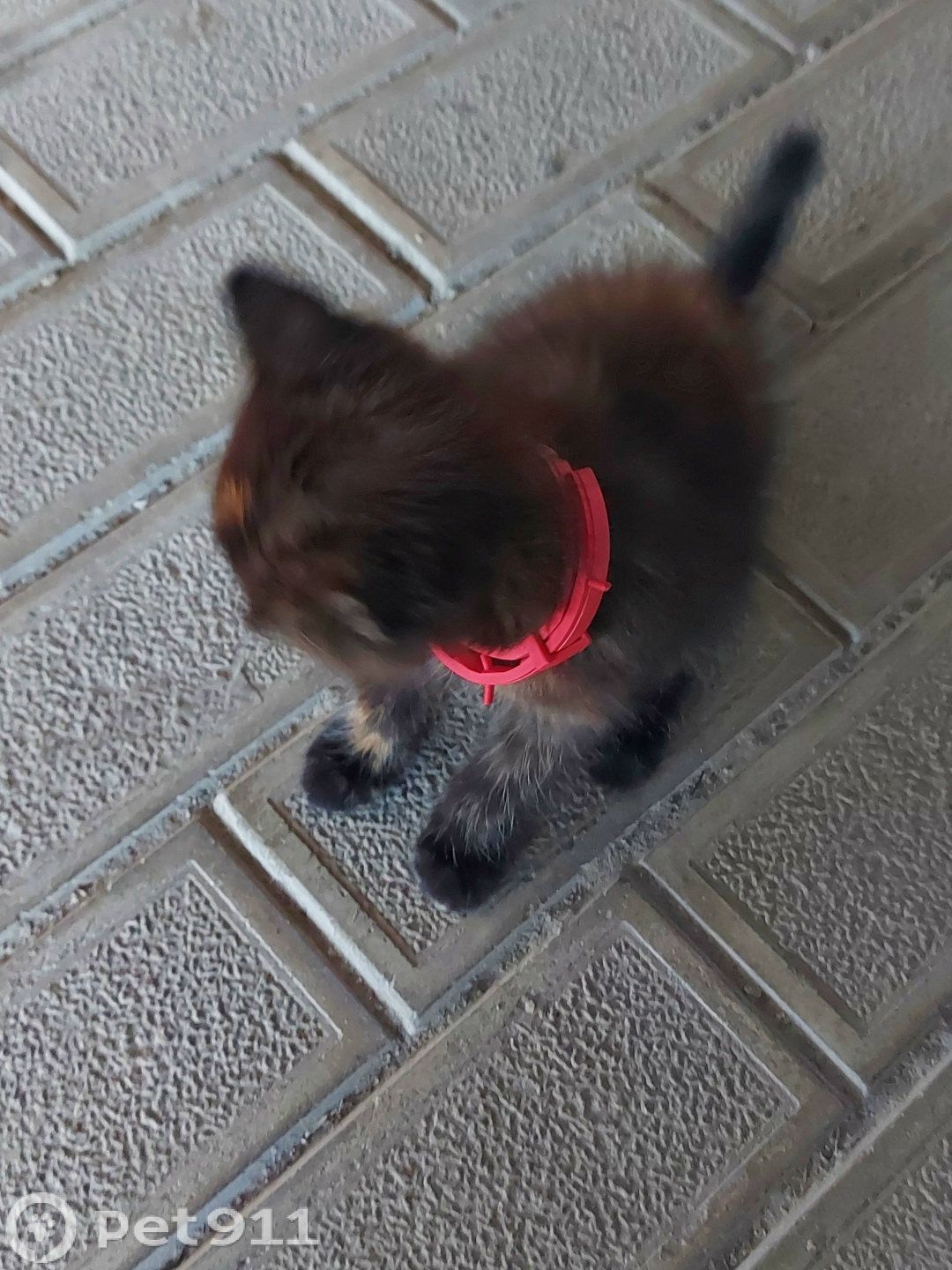 Маленький котенок, два месяца или старше. Глаза светлые, шерсть тёмная, но на подбородке белая. Была в розовом ошейнике. Зовут Норка. Подушечки на лапках тёмные. Пожалуйста, помогите найти, если знаете где она