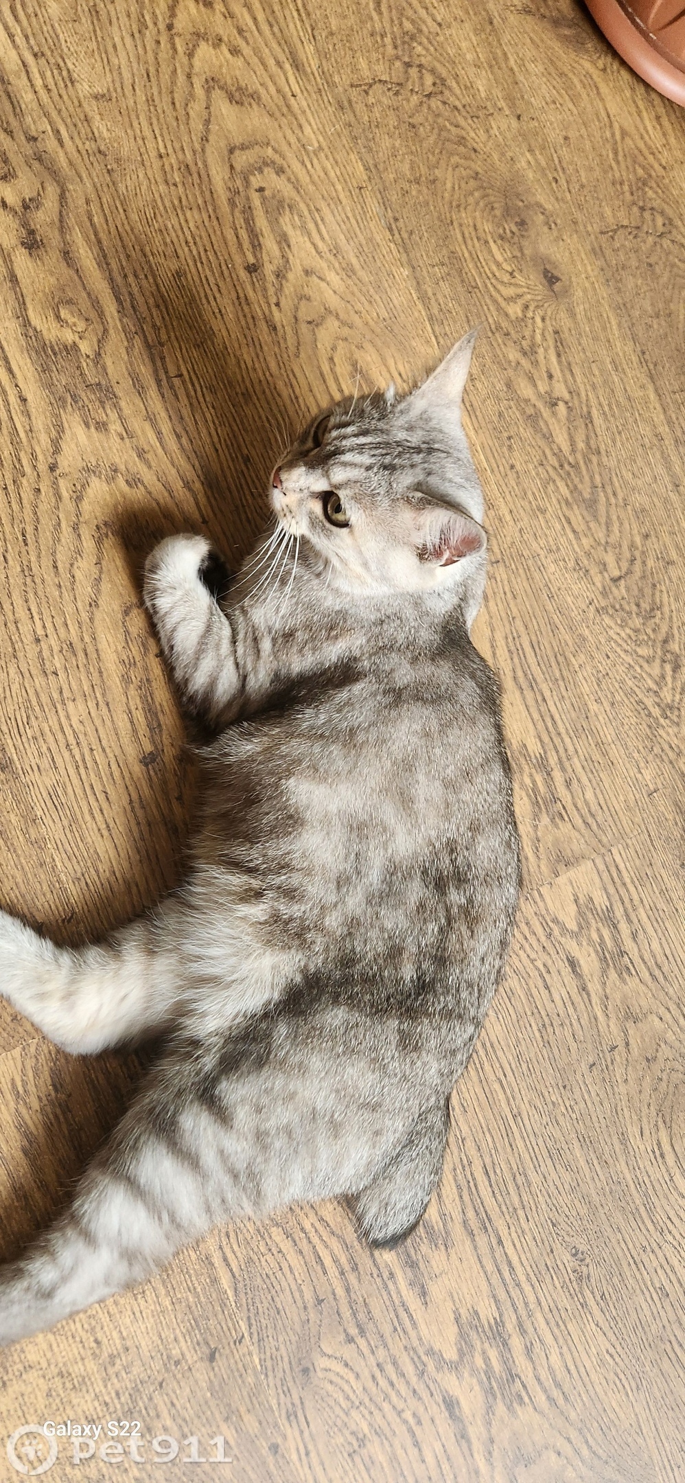 Выглядит как рысь. Кошка без хвоста. Упитанная и с ошейником