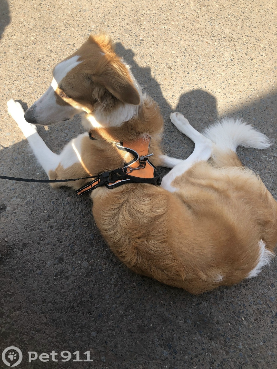 Афганская борзая. Со шлейкой оранжевого цвета.