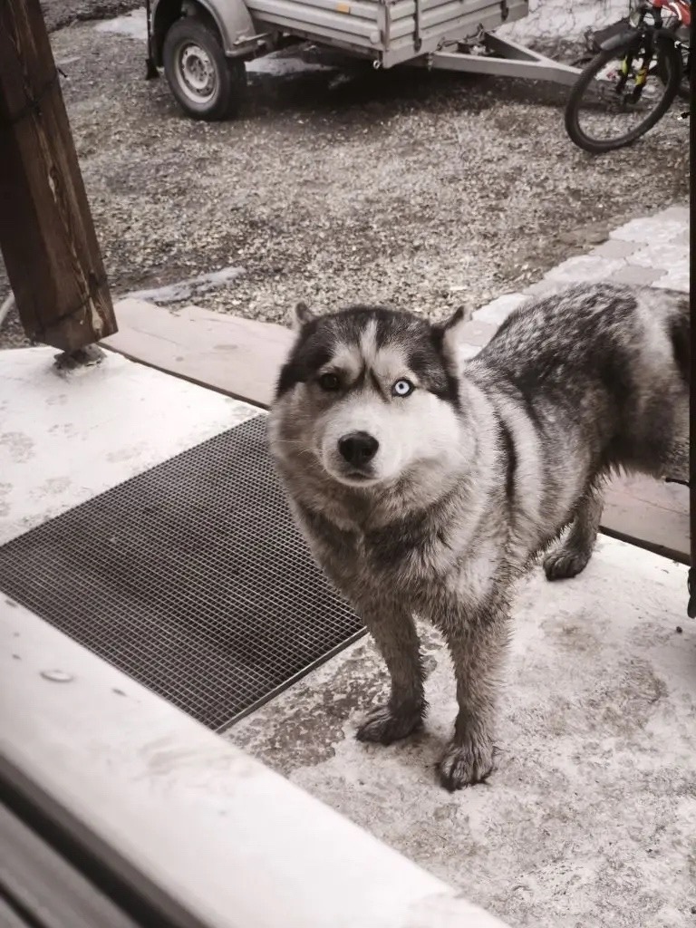 Найдена хаски. Район Зыряновка. Девочка молодая, очень ручная, есть след от ошейника. Хозяин найдись