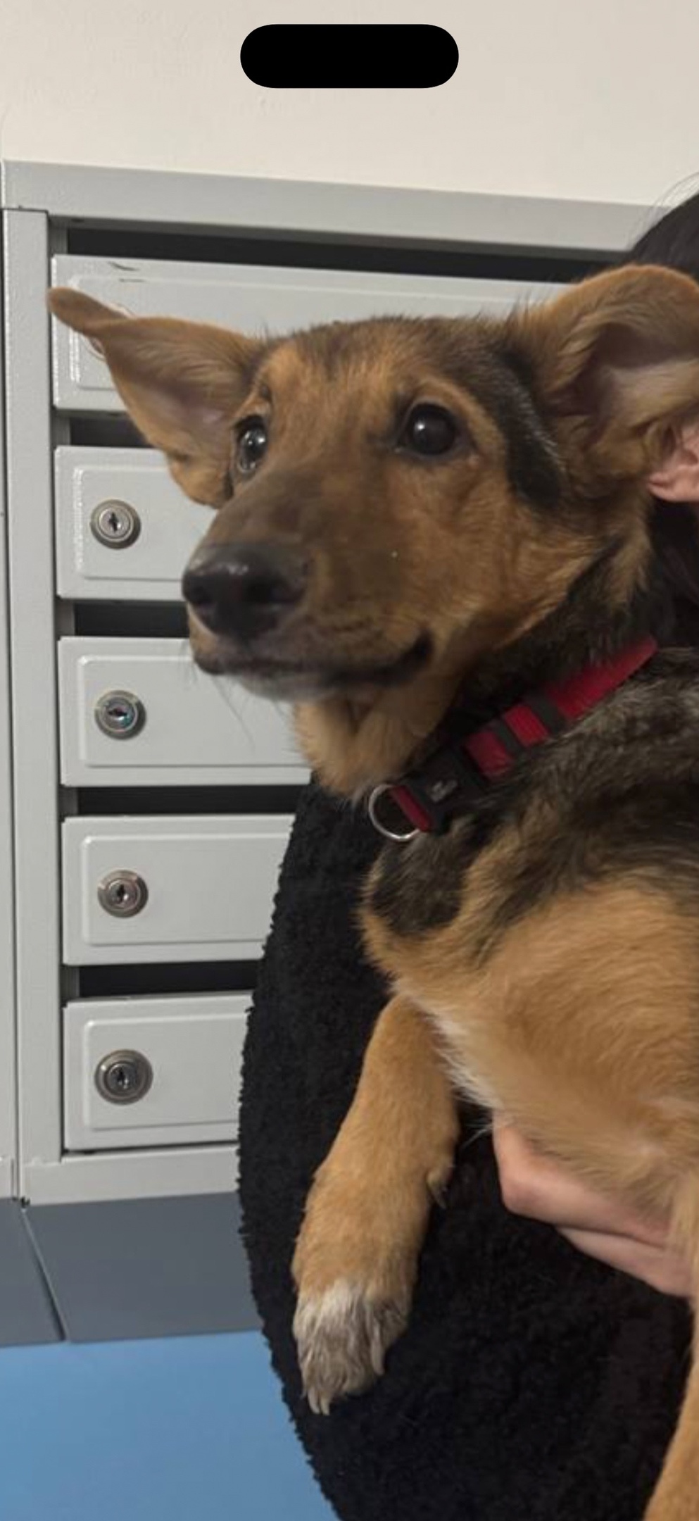 11.03 на ул.Введенская возле дома 80 был найден щенок с красным ошейником. Девочка, на вид 3-4мес. Застряла между стеной и каменным цветником. Очень сильно напугана, но очень контактная. Ищем малышке старых хозяев или новый дом🙏