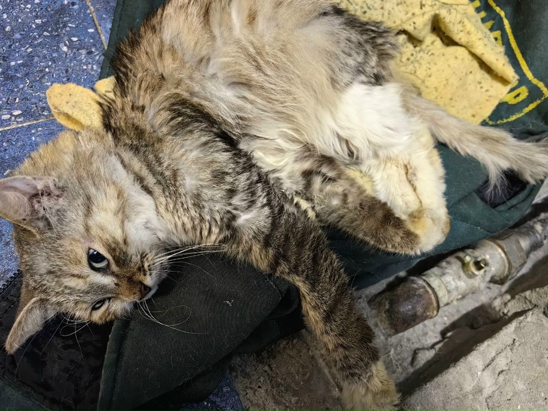 На промзоне прибилась кошка. Вернее отбили от собак. 100% домашняя. Знает то такое лоток. Шерсть чистая. Скол верхнего клыка и ссадина нижней челюсти - явно упала с высоты (с окна или балкона). Состояние, аппетит хорошие, но явно поморозилась и сильно оголодала пока попала к нам - рёбра торчат, но кормим. Что попало не ест - любит влажные корма с пакетиков - скорее всего кормили ими. Собаки вроде сильно не потрепали. Ласковая, на руки просится - явно домашняя. 31 декабря предприятие закроется на новогодние каникулы, кормить некому, отопления не будет, да и начальство против. Скорее всего отвезём в подвал какого-нибудь жилого дома где хотя бы тепло и нет собак. Ищем хозяев срочно.