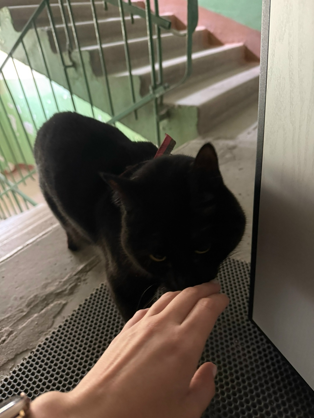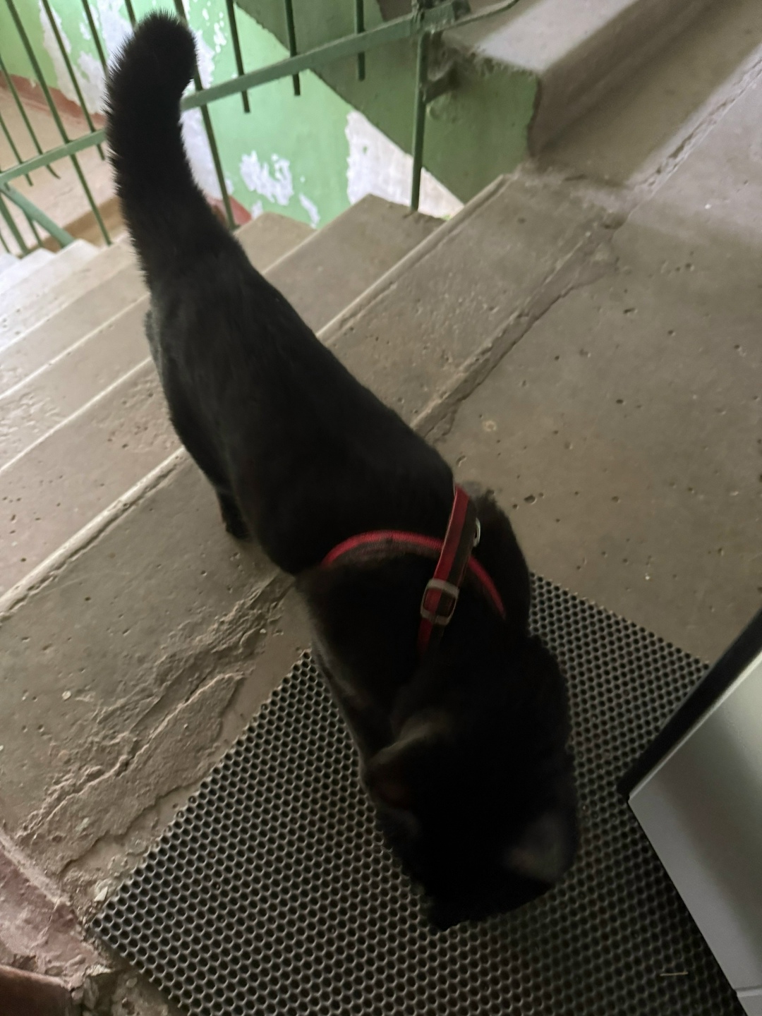 Найден кот. В красной шлейке. Сидит в подъезде