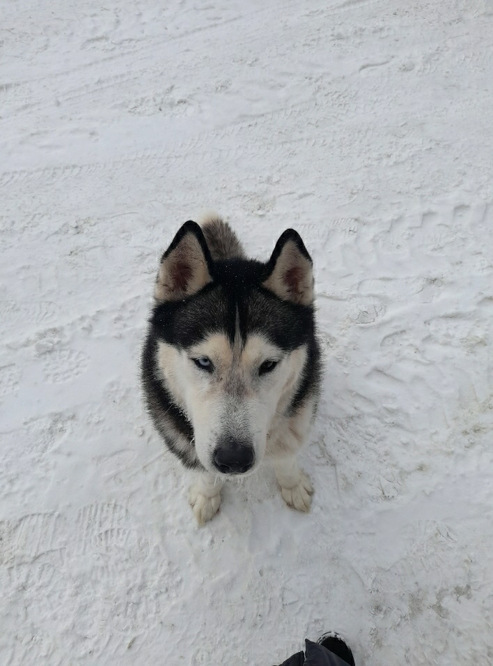 Найдена собака Хаски с ошейником,бегала по ул.Ленина!!!! Мальчик,примерно 2 года,очень контактный, хорошо ладит с собаками, особые приметы-разные глаза.