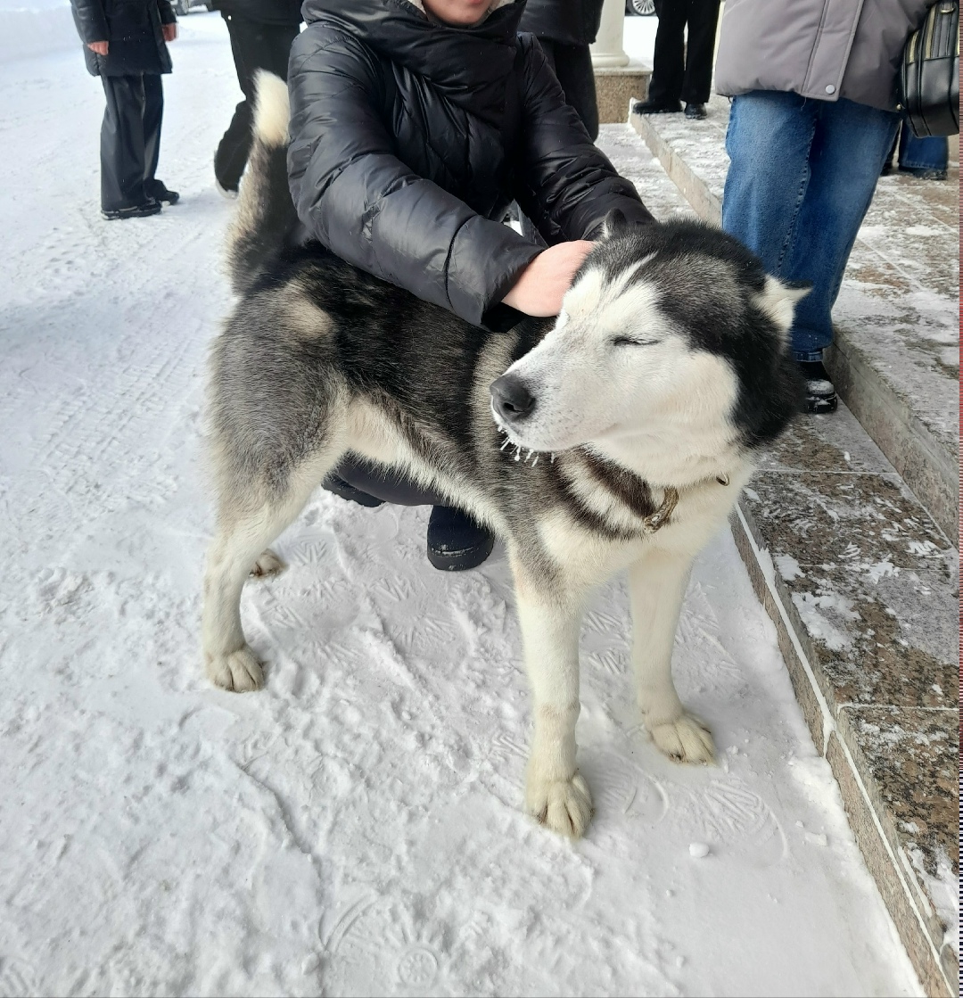 Найдена собака Хаски с ошейником,бегала по ул.Ленина!!!! Мальчик, примерно 2 года, очень контактный, с другими собаками ладит хорошо, особые приметы-разные глаза.