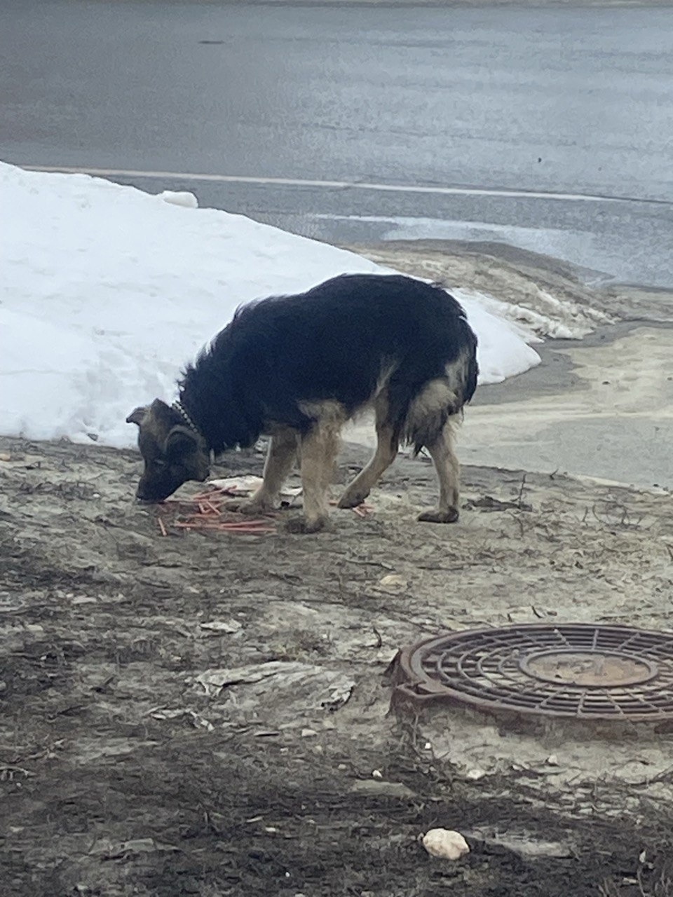 В районе Весны, между домами 172, 174 пр. Строителей, сломана лапка, в ошейнике.