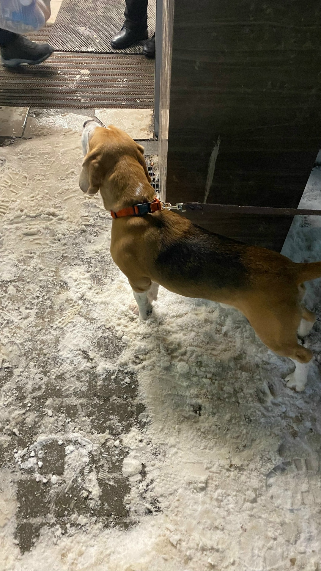 Найдена собака породы Бигль (кобель). В шлейке оранжевого цвета с поводком. Между магазинами Магнит и Спар на проспекте Строителей 40. Вечером 07.01.25