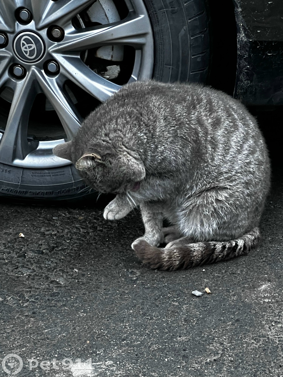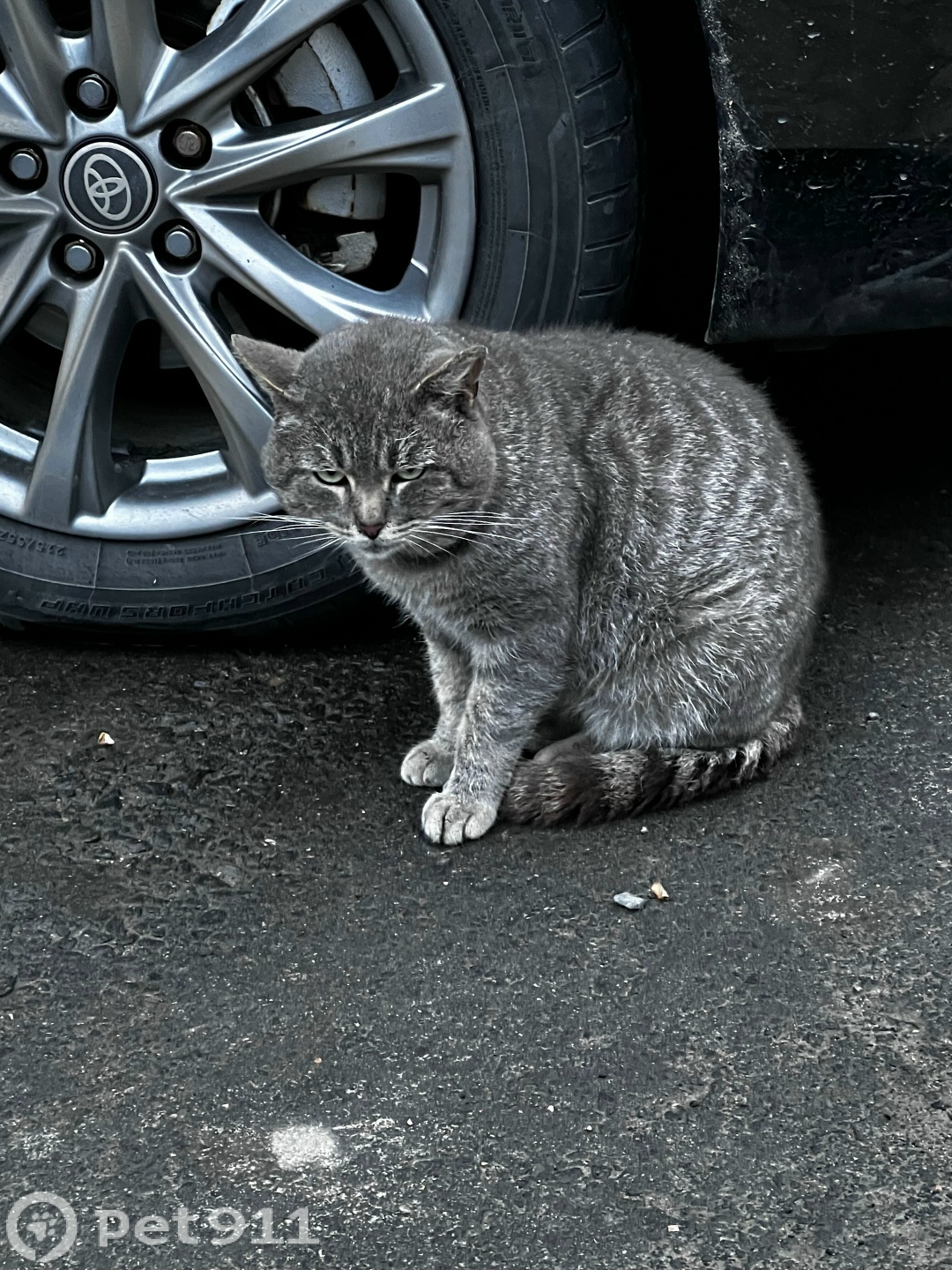 Кот около магнита. Район Кима. Ухоженный. Скорее всего домашний. Ослаб и голоса почти нет. Светло-серый окрас