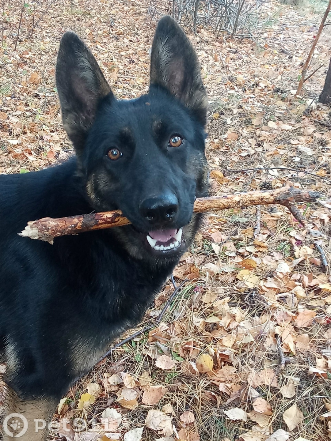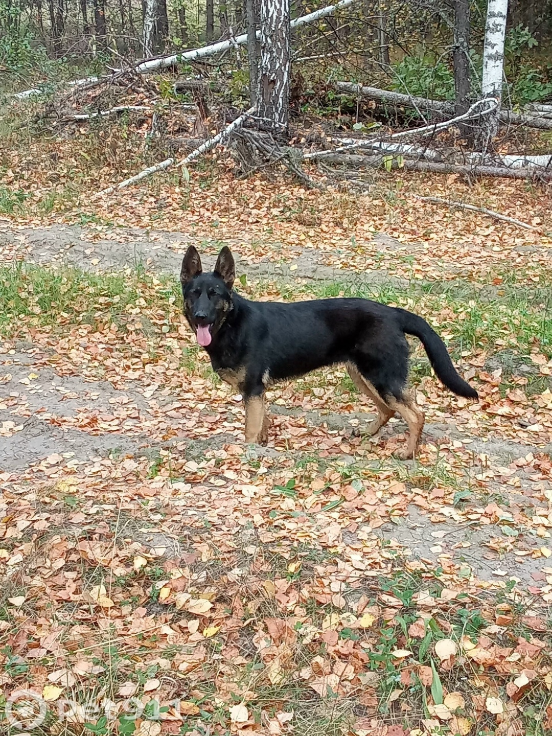 Почти черная немецкая овчарка. Сорвалась с поводка.