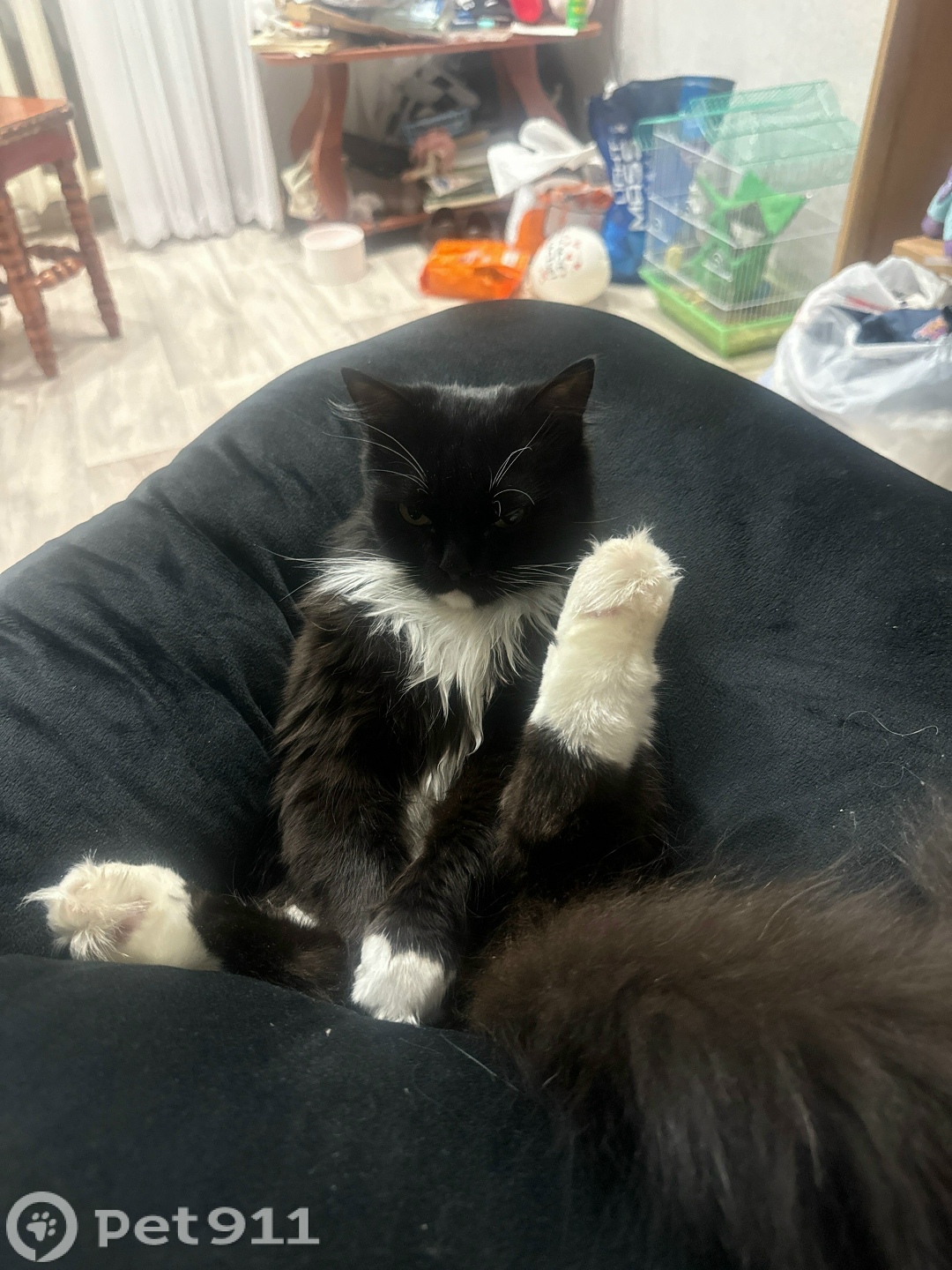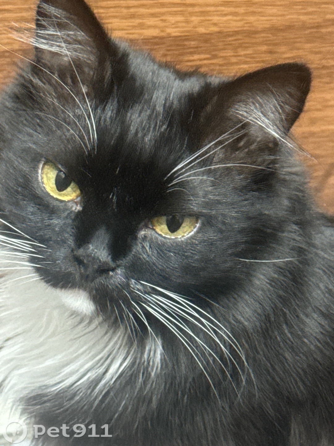 Чёрный кот с белой грудкой и бородкой! Пугливый!