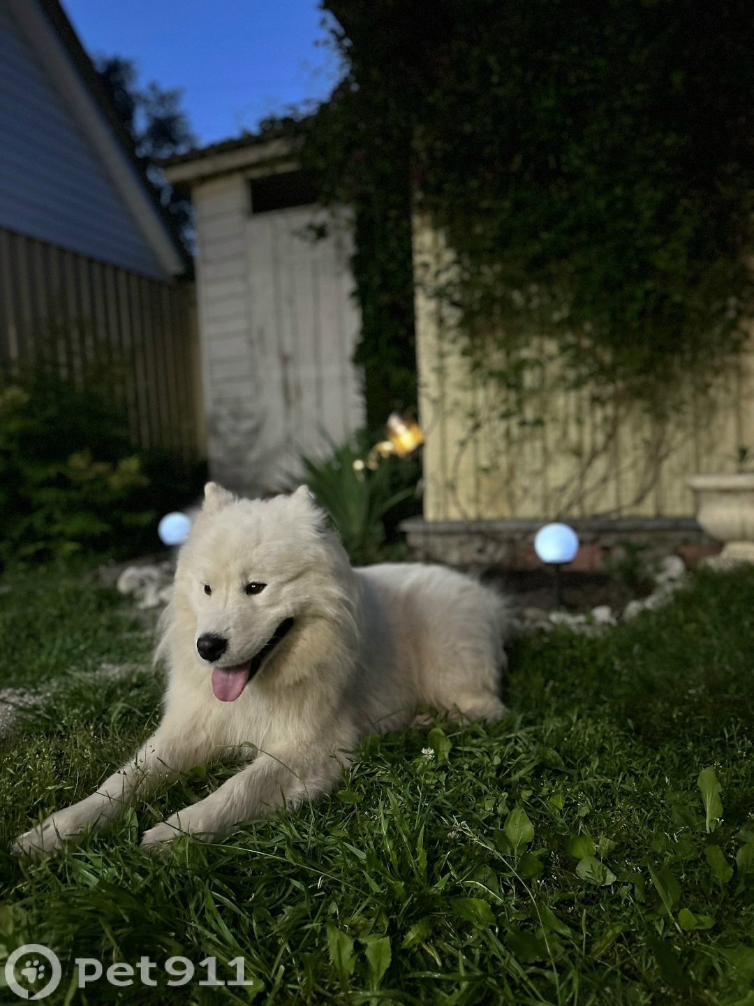 Самоед - Алекс Возврат - 4 года Особые приметы : - порваны (но уже зажившие) ушки - свежая рана на передней правой лапе (порез) - клеймо на пузе Пропал рано утром в воскресенье 24.08.2025 Район Манчжурия Мой номер для связи