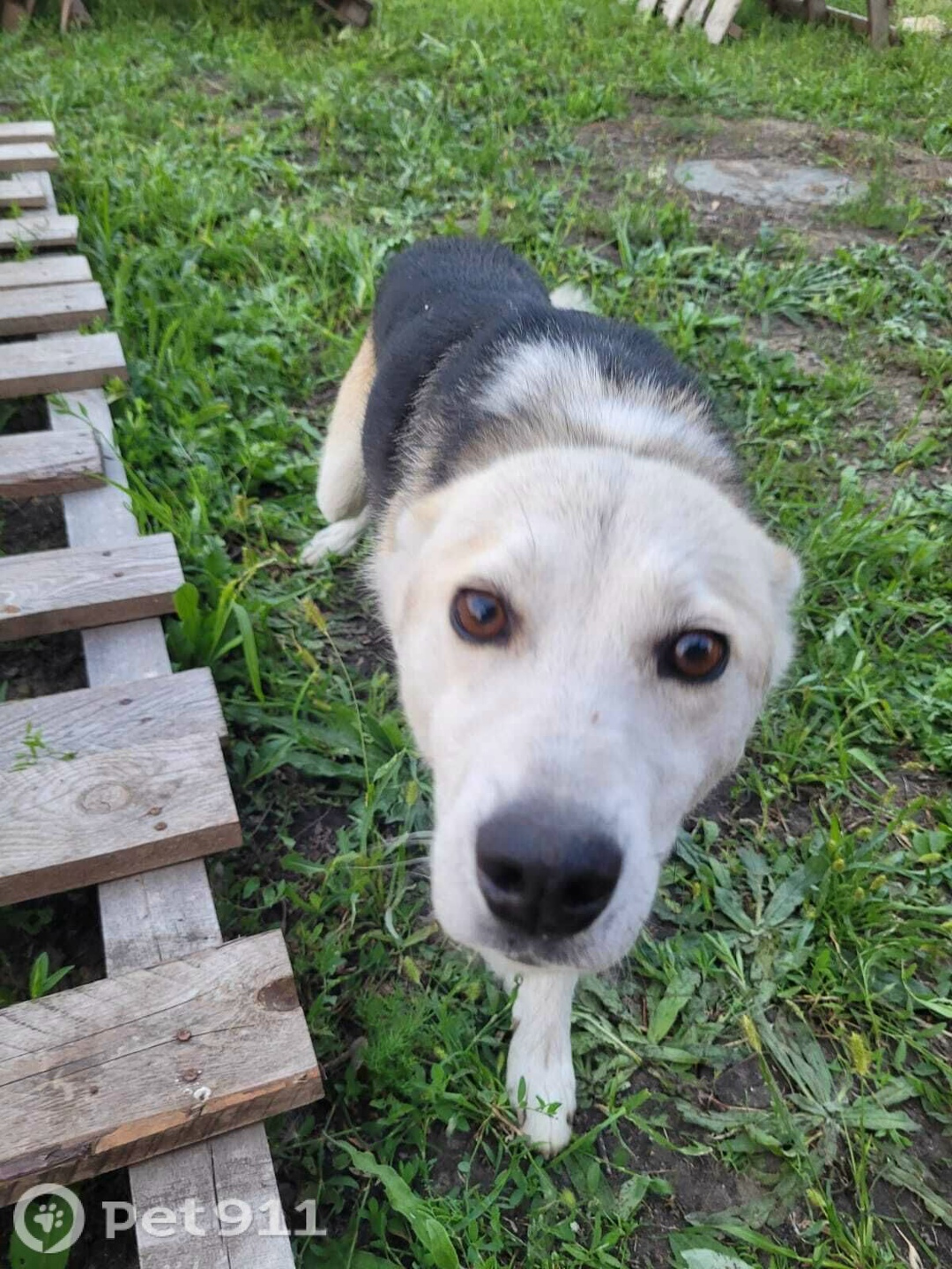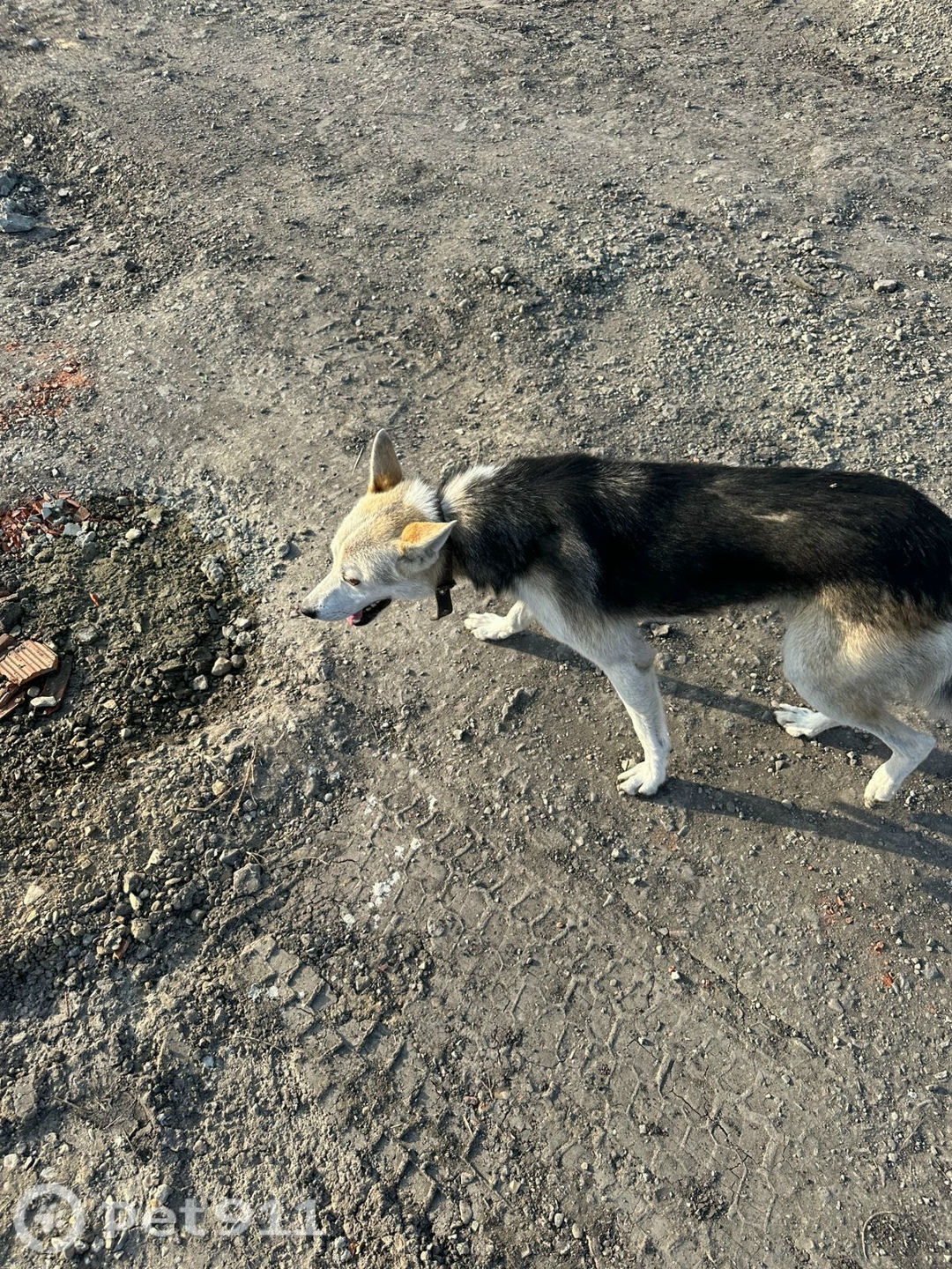 Молодая собачка, предположительно меньше года, в кожаном ошейнике. Неизвестно откуда появилась.