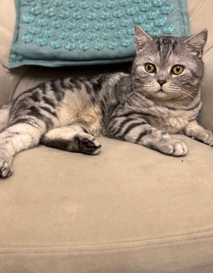 В первой декаде февраля, в одном из подъездов по пр. Ленина найден шикарный (фенотип шотландской породы), молодой (2-3 года), кастрированный котик.