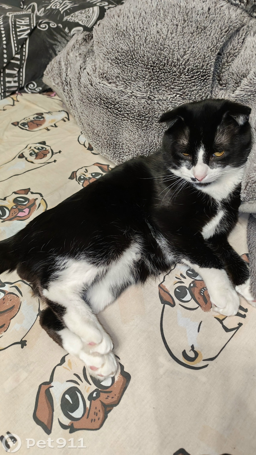 Черно-белый котик.Вислоухий.Помогите найти, пожалуйста