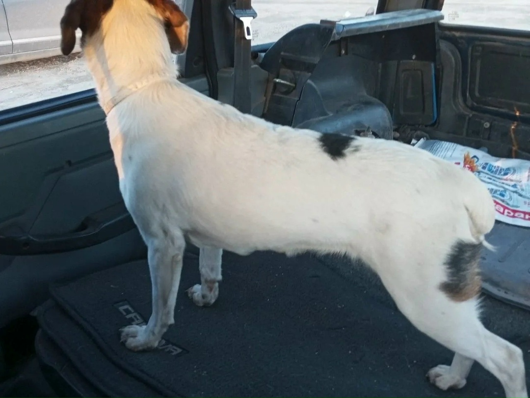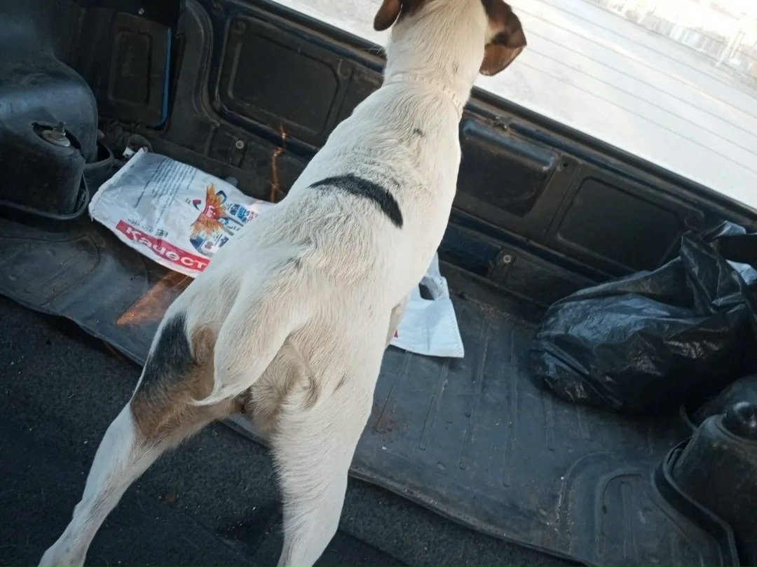 Заметили беднягу на Сырском Руднике (ул. Юношеская, д. 20, 27). Собака в панике металась по дороге и чуть не попала под колеса. Сейчас она в безопасности, ищем старых или новых хозяев.