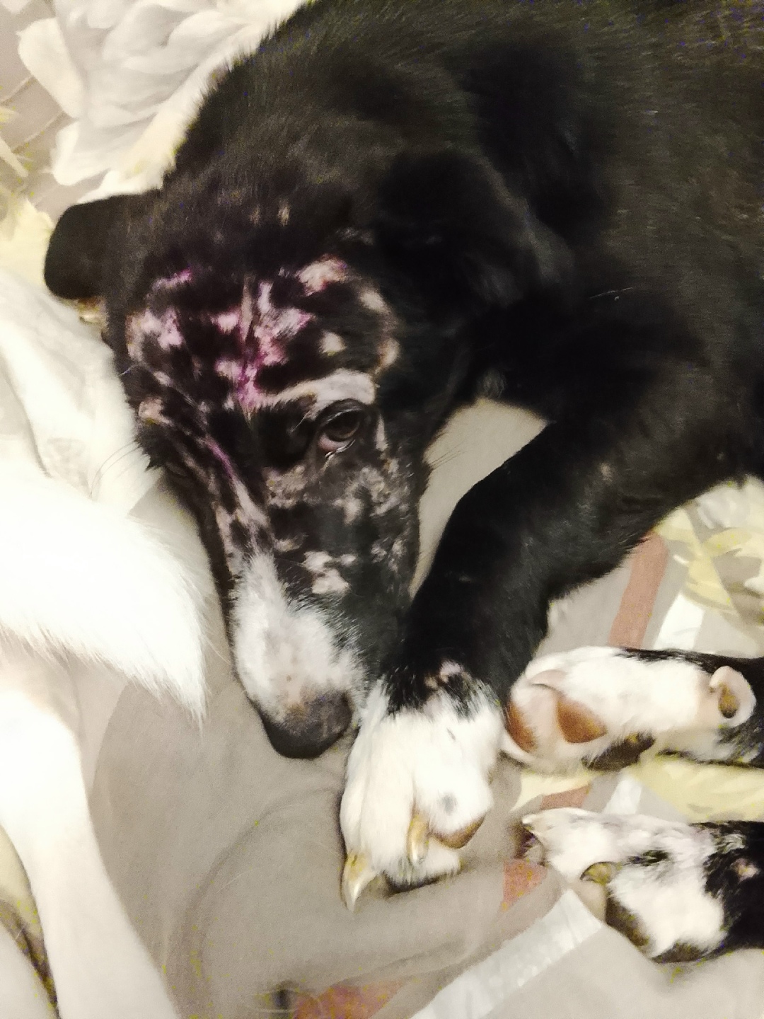 В июне 25 г, когда подобрала 5 малышей, не могла предположить, что у одного щенка возникнут такие проблемы со здоровьем. Четверо нашли хороших родителей, а у Мальвины в 2,5 начались проблемы с кожей, конечно ее никто не хотел брать😢