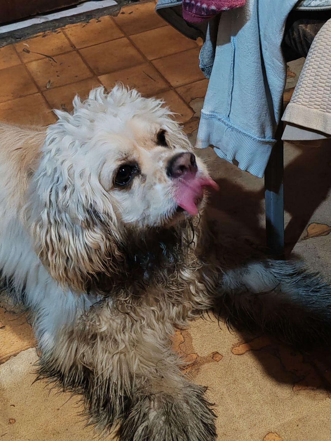 Бегает по всей Ниженке, мокрый, грязный и голодный. Ошейника и адресника нет.