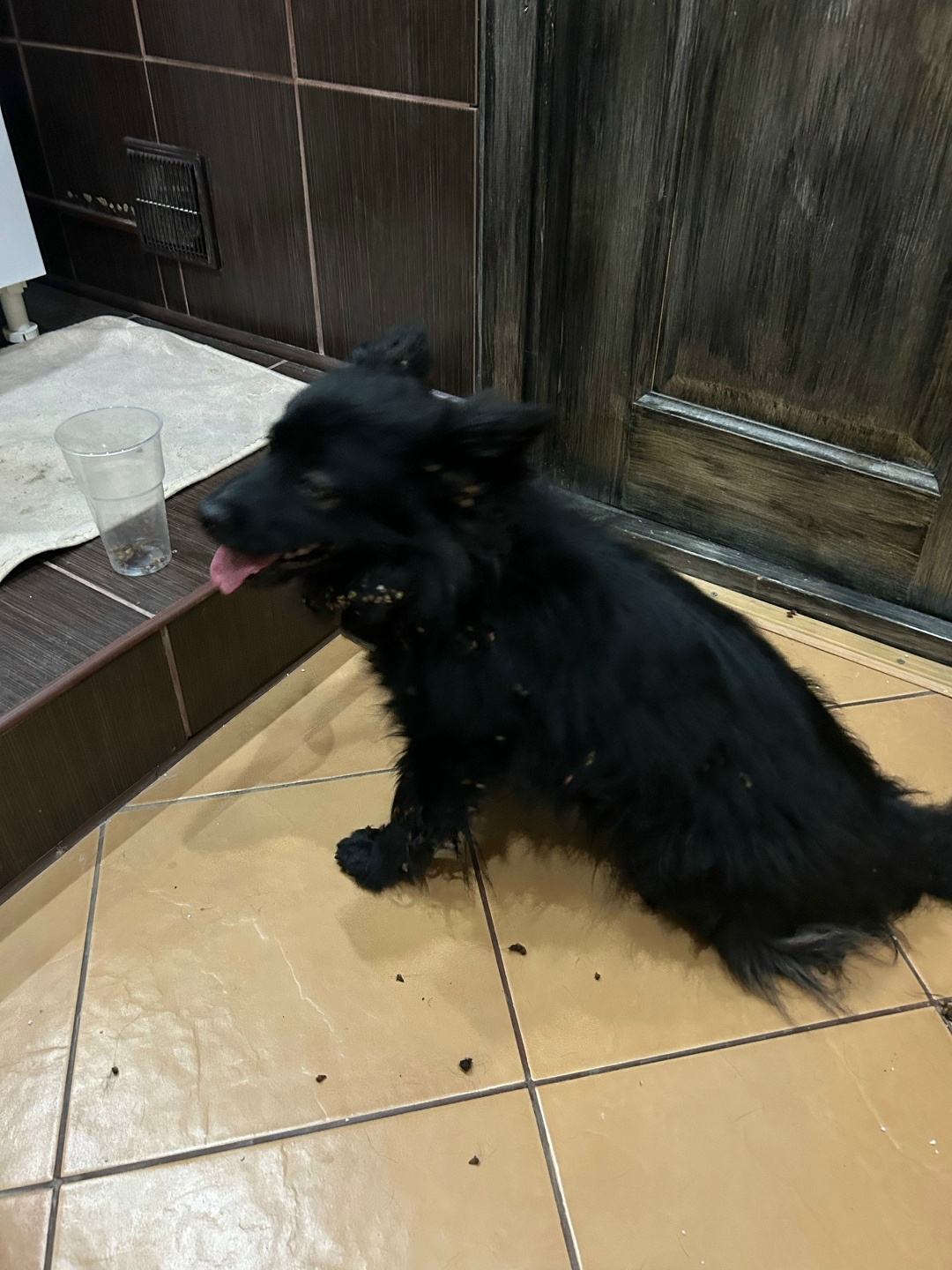 Найдена собака. В районе Лемана про. Очень добрый пес. С ошейником. Весь в репейнике.