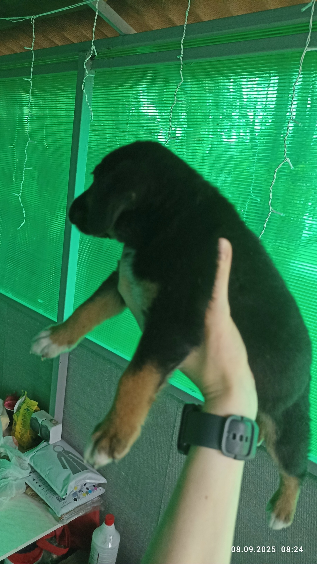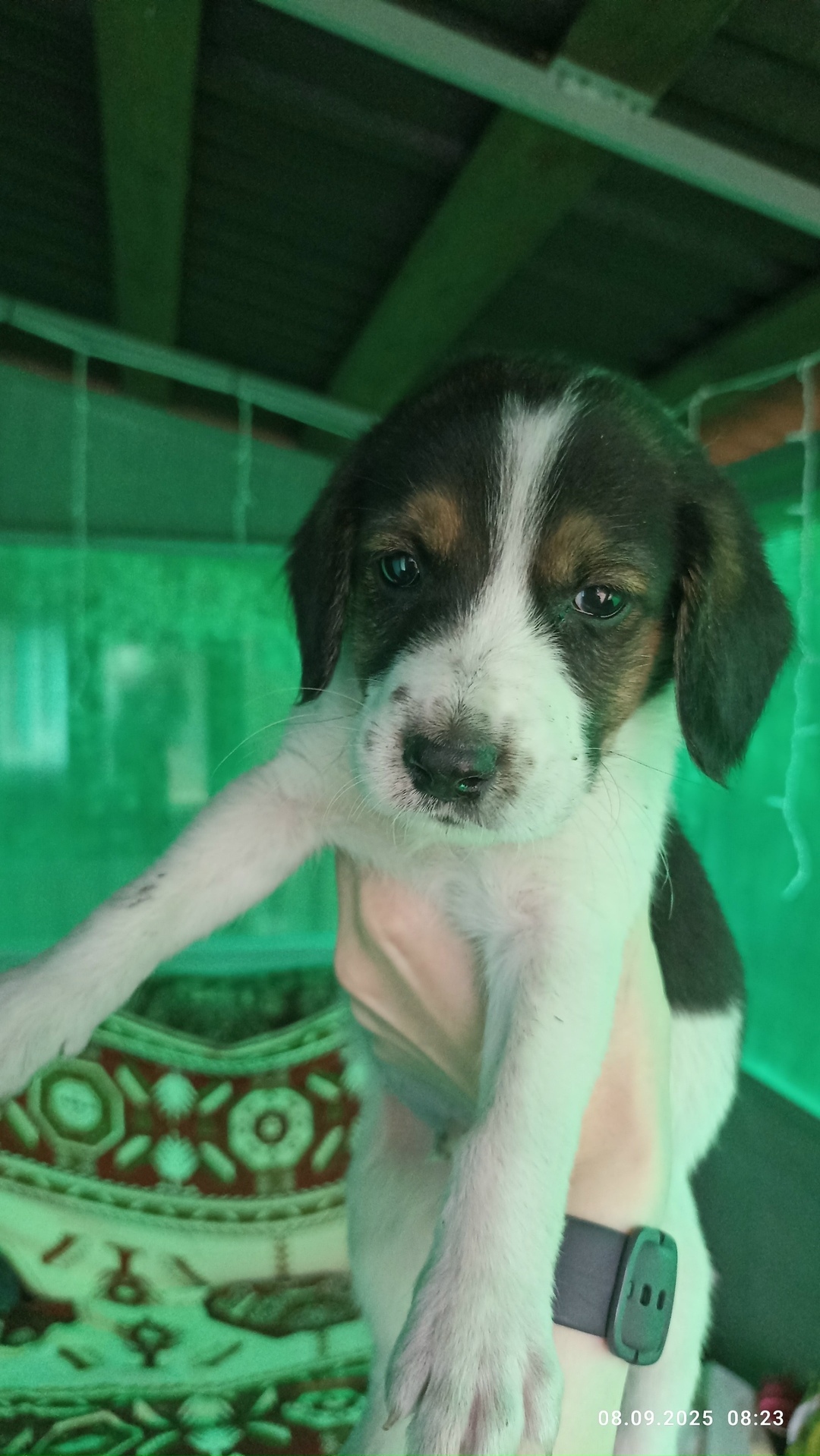Подкинули щенков, на вид месяца два. Чёрная девочка и пятнистый мальчик. Отдадим в добрые руки.