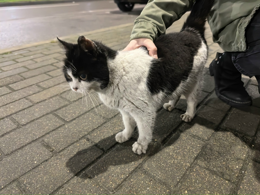 Возле Жукова 5 недалеко от мусорки на Сельме появился котик. Большая голова, коротковатые лапы, похож на смесь с породистым. Плакал, ластился. Может быть кто-то ищет. Мы его покормили, а потом он испугался прохожих и убежал