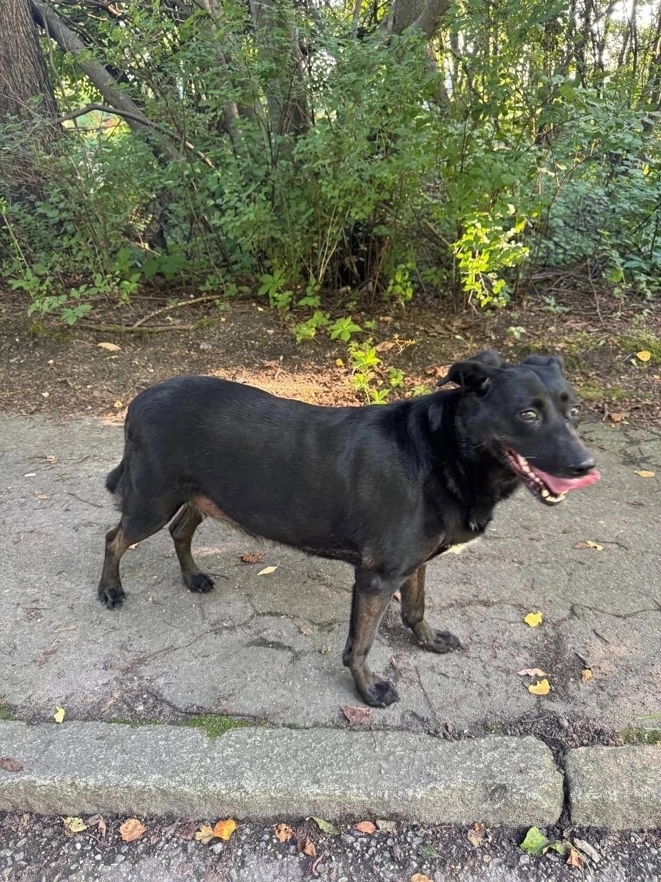 Чья собака? Бежала на мосту прям по дороге, на проспекте Победы, где тюрьма.