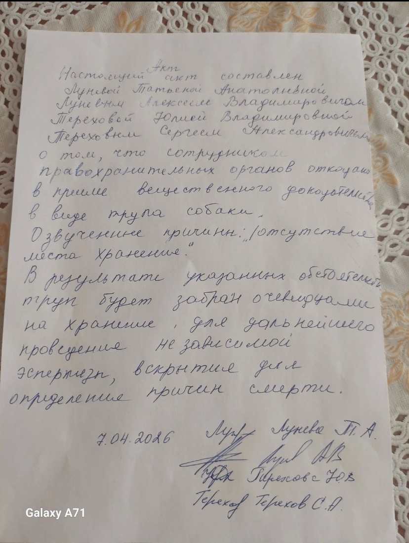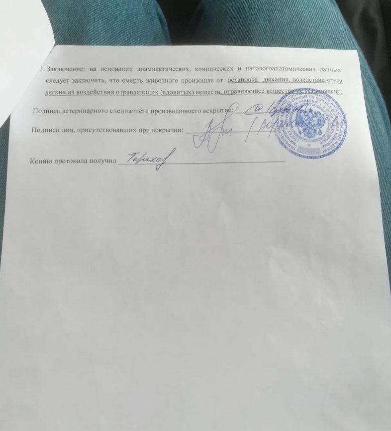 Подготовлено заявление в Полицию и Прокуратуру по факту отравления Полкана.