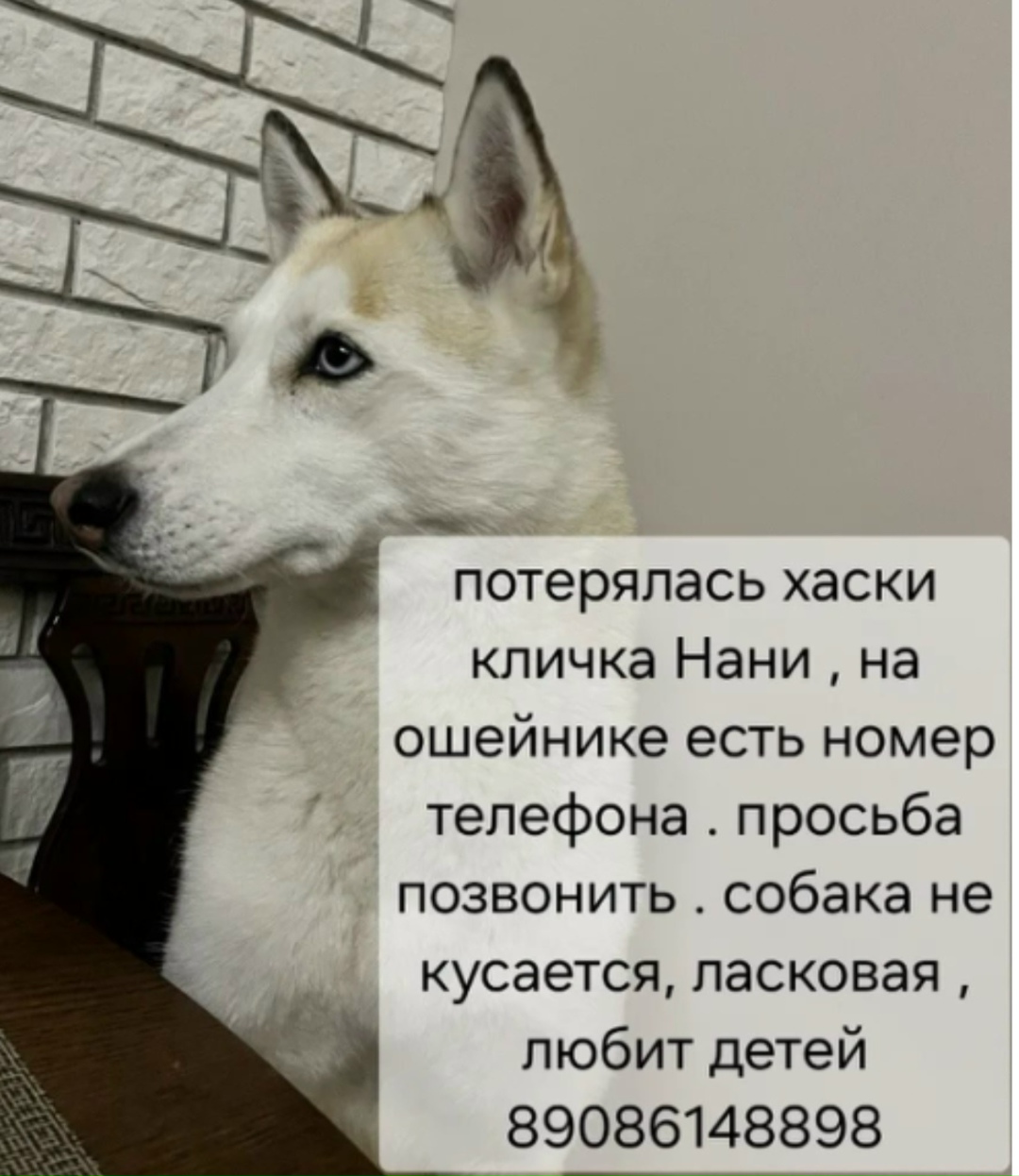 Пропала хаски, информация на фото
