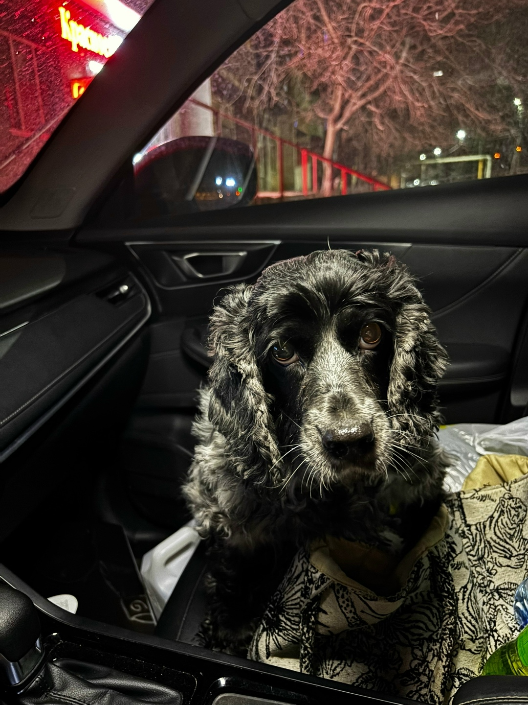 Сидела возле двери в КБ, как будто ждала хозяина, в магазине спросила, никто не знает чья она, сидит давно, видно что упитанная, может потерялась, может бросили, забрала себе домой временно.