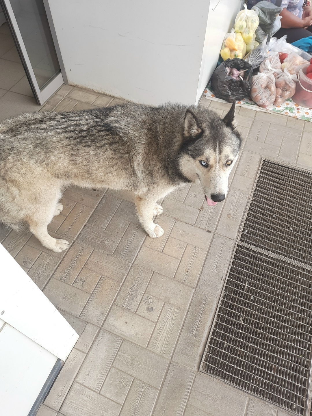 Здравствуйте! На улице Новороссийской 95Б, рядом с магнитом бегает пес, похож на хаски. Может быть, он чей нибудь?