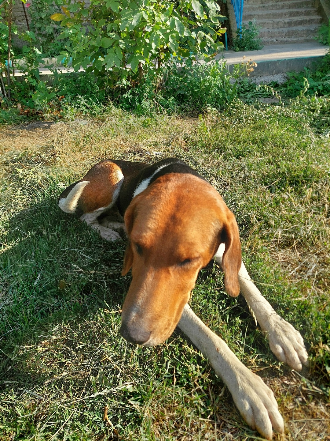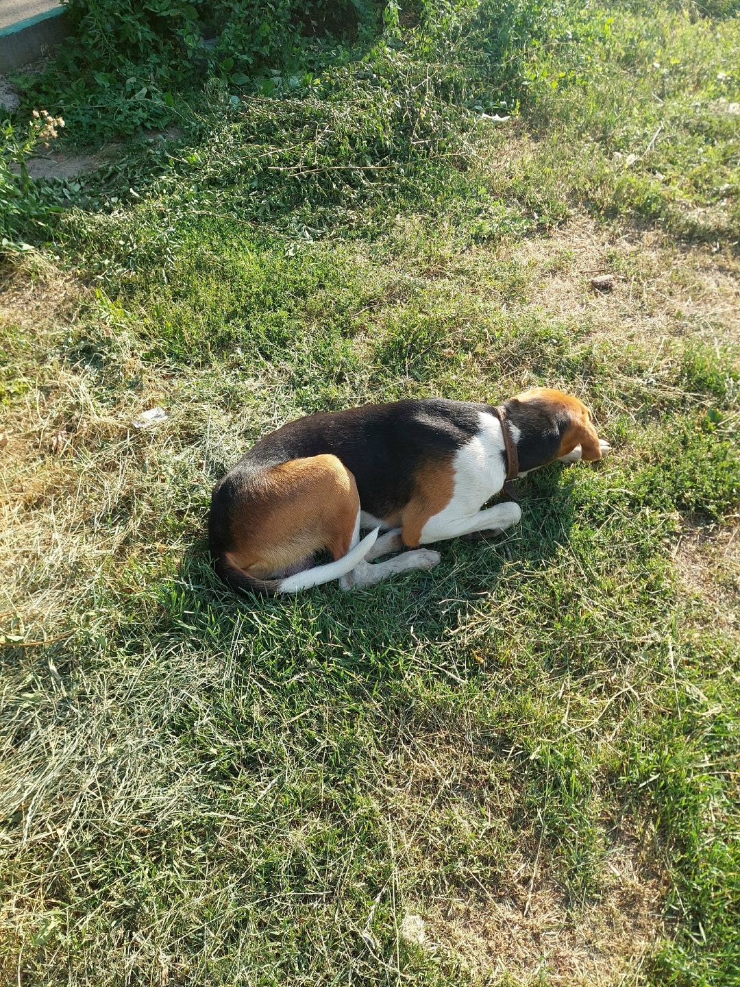 В районе спутника бегает кабель бигля с ошейником. Чистый, без лишаев и клещей, как мне показалось. Последний раз видел у дома по адресу Софьи Перовской 75. Ласковый. Покормил беднягу четырьмя жидкими педигри, съел подчистую