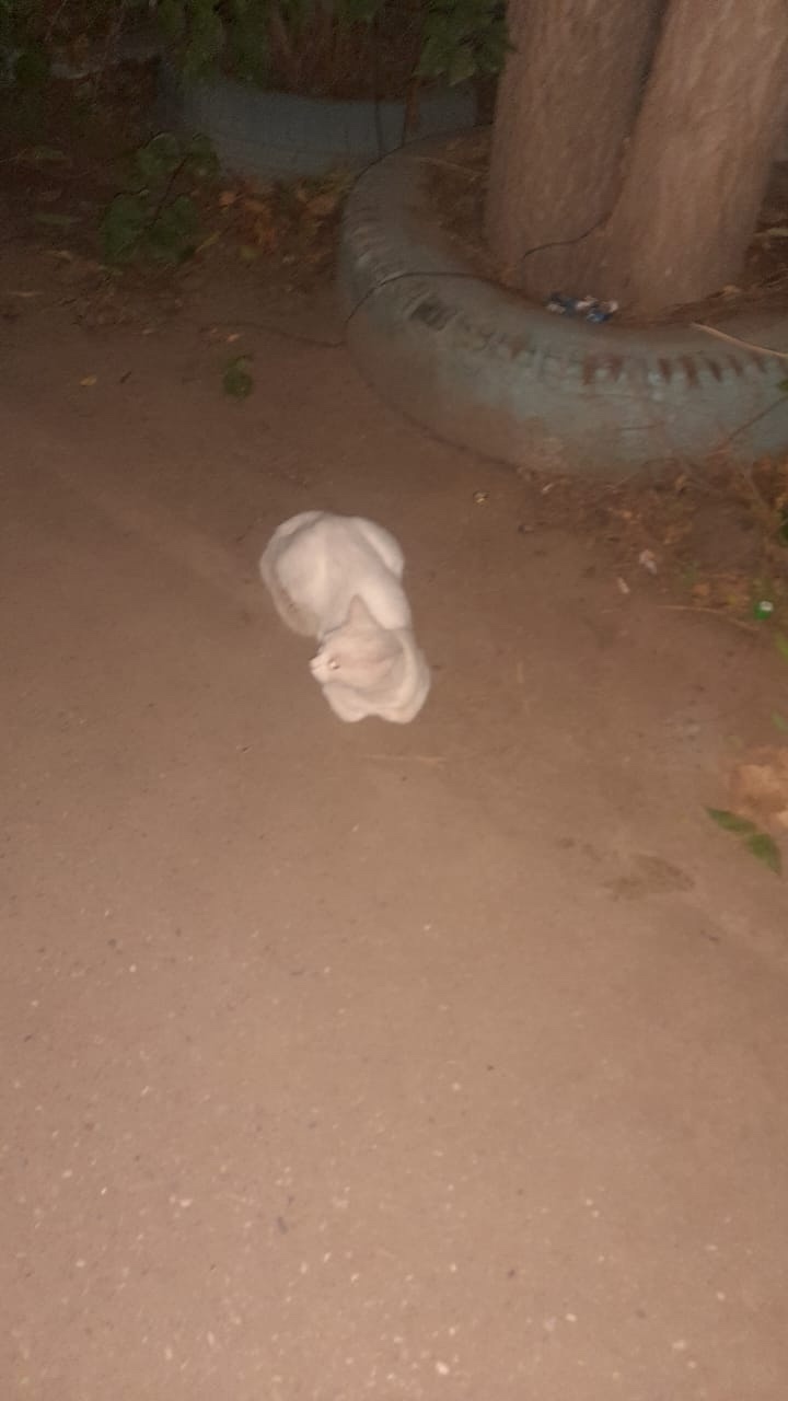 Появился белый чистенький котик в центре города в районе магазина Угловой (Дарвина 4/53). Постоянно находится рядом с магазином, на вид домашний. Смелый, людей и собак не боится. Чья потеряшка?
