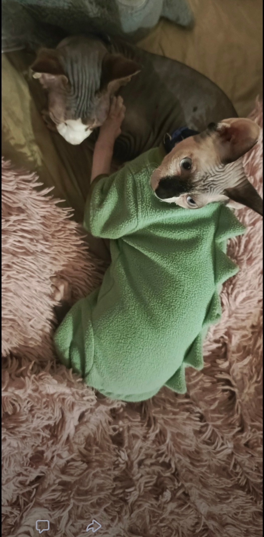Здравствуйте, убежал кот породы Сфинкс, район Заречье, город Тула, улица Октябрьская 201 ( напротив Комсомольского парка)помогите, пожалуйста, найти!!!! Возраст 10 месяцев, зовут Бонни, одет в одежду был, как на фото, носик чёрный, ушки тёмные и хвостик, туловище розовое, немного серых пятнышек у хвостика