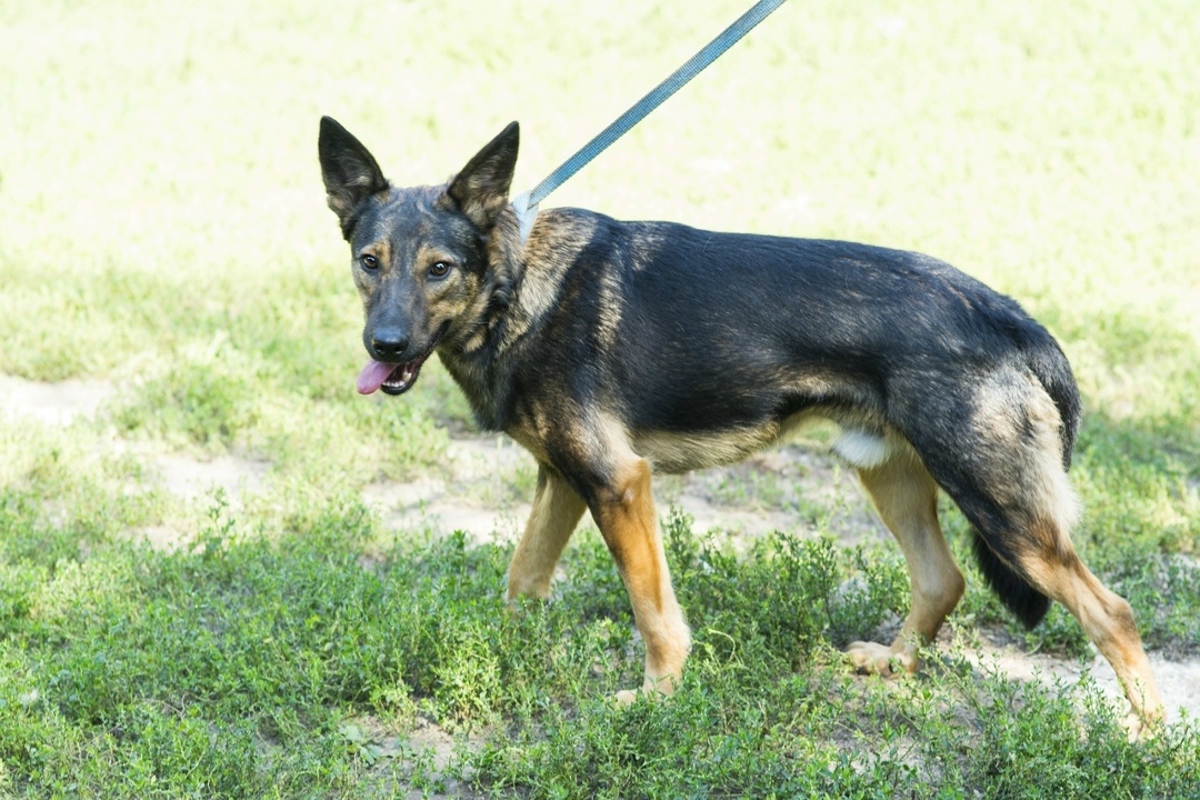 Халёный красавец "овчаристого окраса" со стоячими ушками, гладкошерстный.